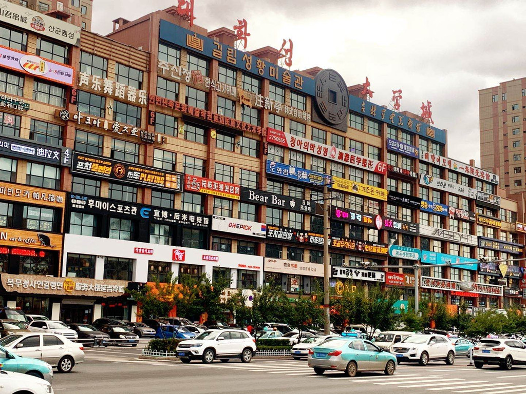 延边大学对面的网红大楼,这座大学城,几乎成了延吉的标志。中韩文的广告牌标示,让你恍如来到了韩国街头。站在路边来张照片,车流穿梭和背景的商家招牌让你瞬间成了一个有故事的同学。