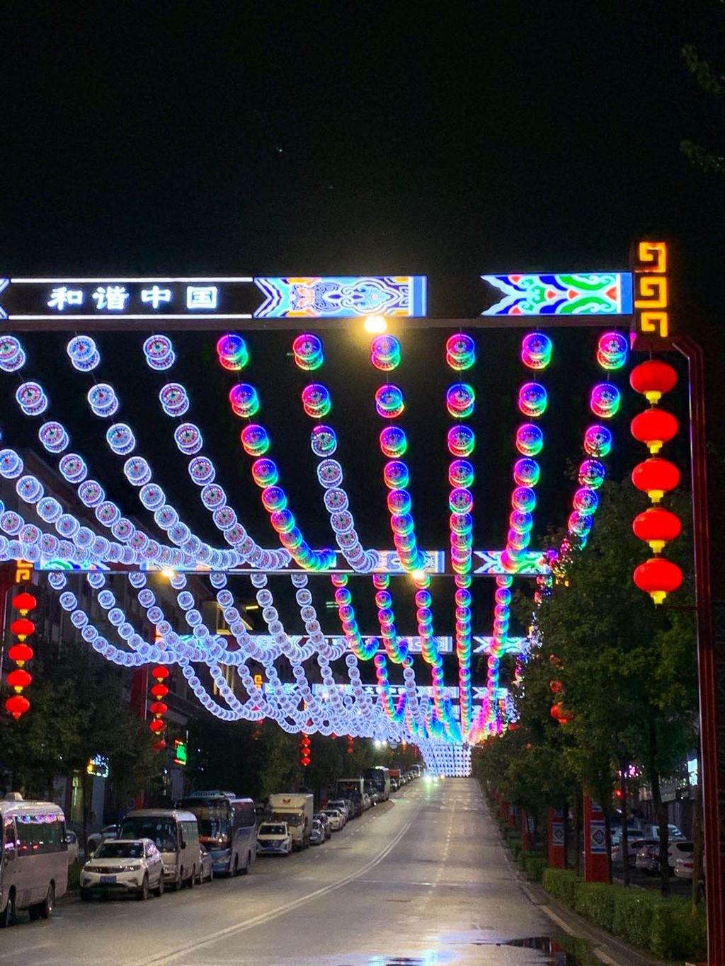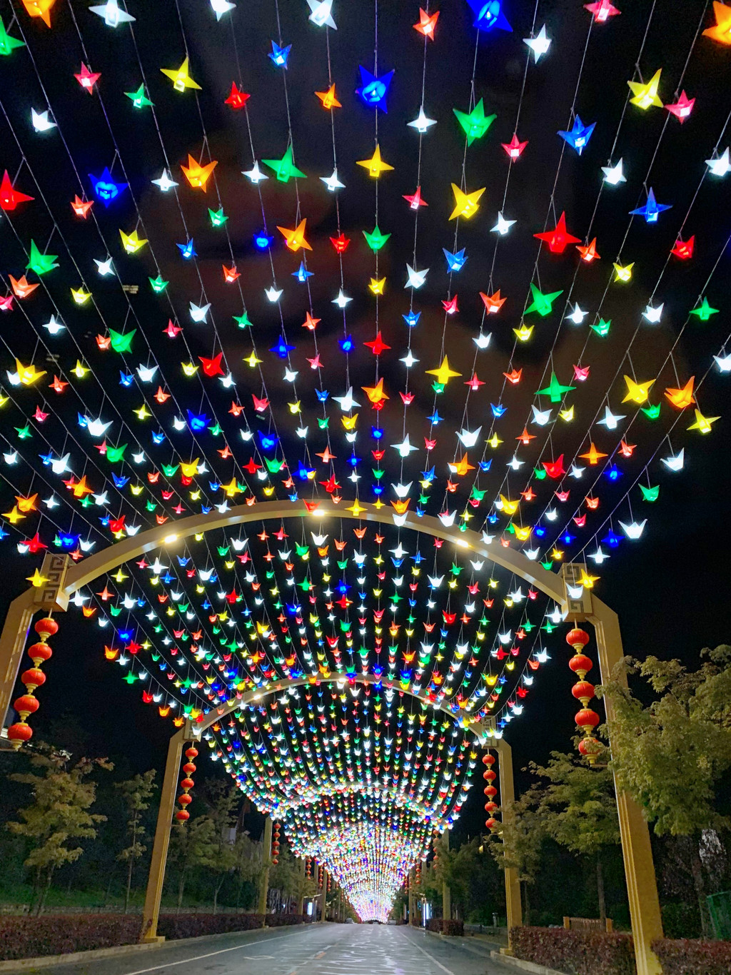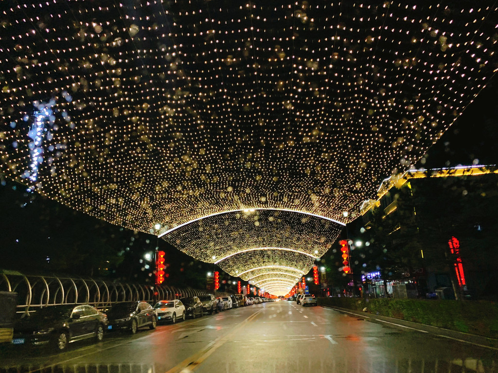 到了晚上,整条主干道漫天繁星,耀眼闪烁,非常童话。