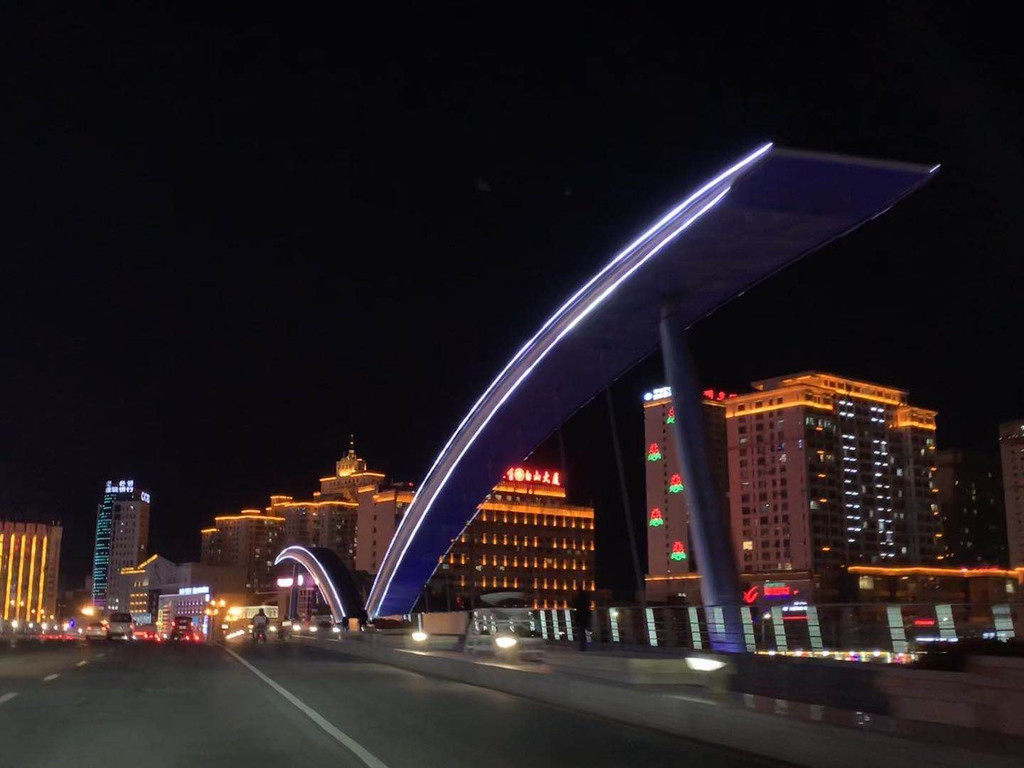 这座大桥位于布尔哈通河上,从桥的中间散发出两条弧形射线,仿佛仙鹤一般,凸显朝鲜族的特色,据说晚上有音乐喷泉,桥下有排挡小吃摊,但我们只是车子通过,没有看到小吃摊和喷泉。