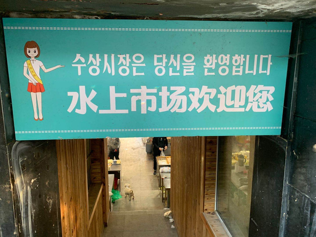 这里是延吉当地人民喜欢逛的菜市场,开放时间4:00-9:00 ,一定要早来!!我们8点起床赶了个晚市,幸亏吃到了网红油条(非常好吃,非常推荐),土豆饺子,米肠,紫菜包饭,狗肉汤(我闺蜜是延吉当地人,她这个爱狗人士却又极力推荐她们民族特色的狗肉汤,我也是不懂她的脑回路),但有一说一,味道很不错,不说,真的吃不出来是狗肉。还买了不少有特色的咸菜(注意!!不推荐你们在水上市场买,这边的咸菜更咸,味更重,更适合当地居民的口味。可以去边上的西市场买特产,更多更全可适合选择,还能直接邮寄,很方便)