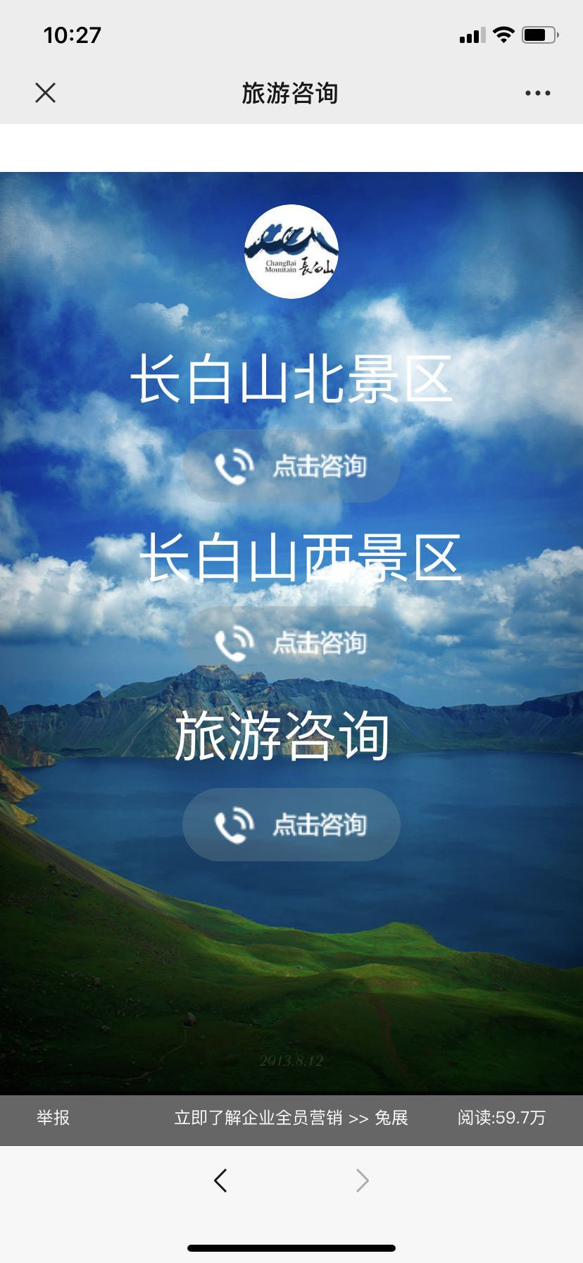 现在长白山没有售票处。门票都需要在公众号上提前购买,可以关注公众号(见下图),公众号内也有各个坡的电话,可以打电话咨询。