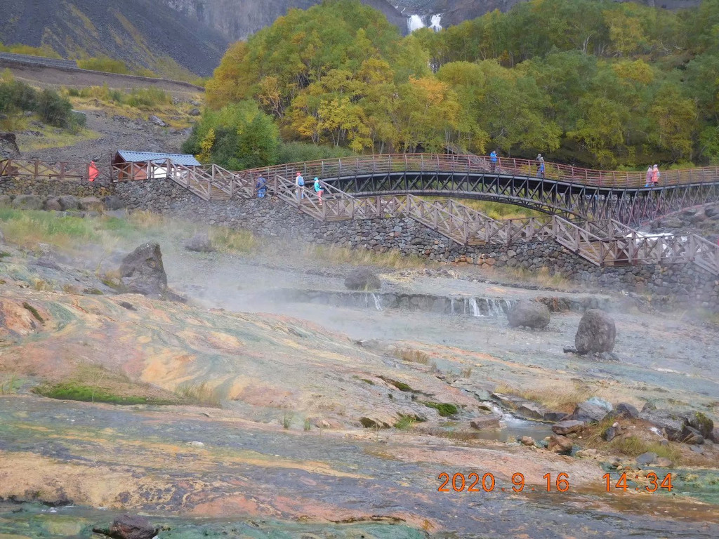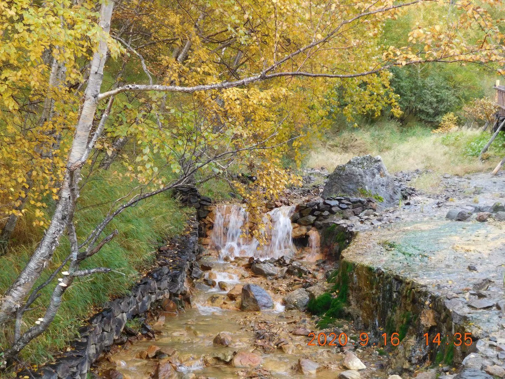聚龙温泉群在瀑布的另一边,热气形成的雾气缭绕,这里还有个温泉手汤池,水温83度,但伸手进去感觉水温刚刚好。