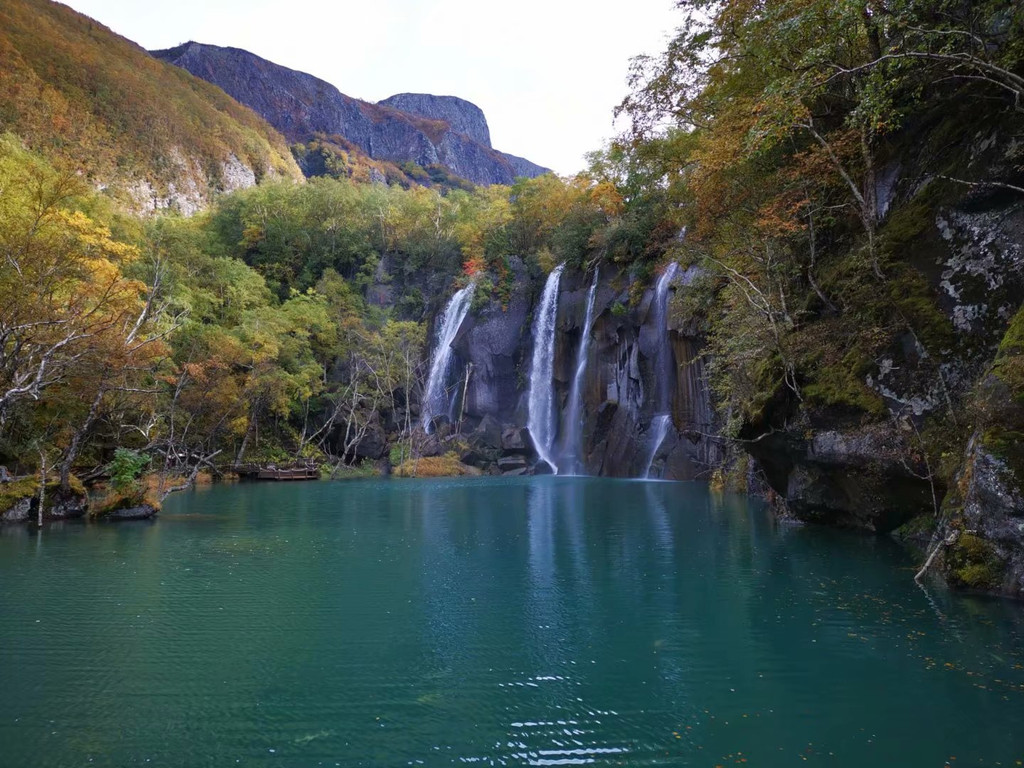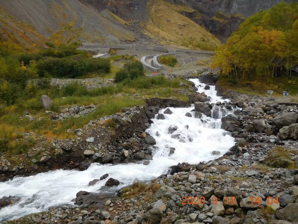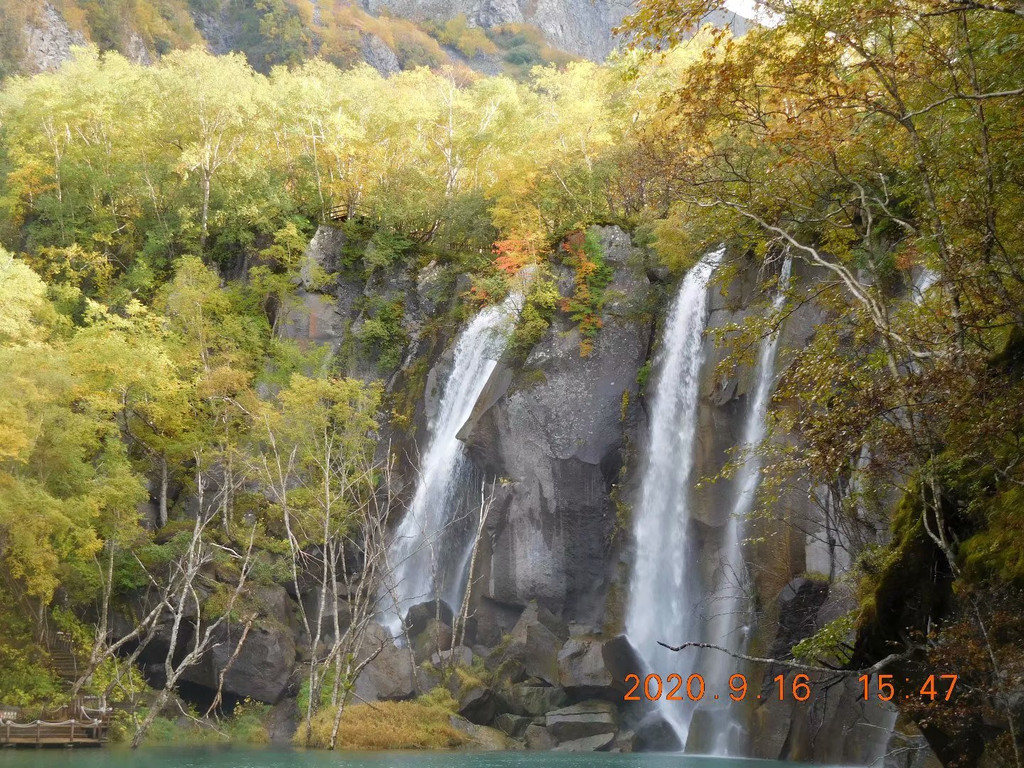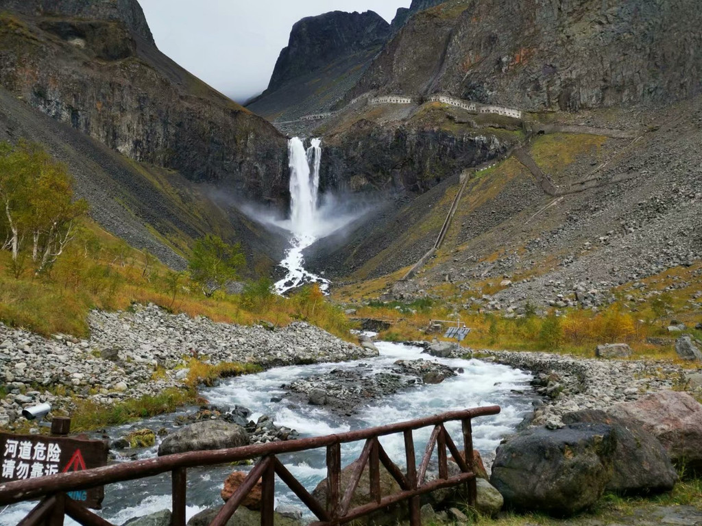 远远望去,在巍峨的高山上,悬挂下两条银白色的瀑布,激流跌落,一泄千丈。浪花飞溅,如雨似散,数里之外能闻其轰鸣之声。沿着蜿蜒的河流,我们向上追寻,沿途听到浪花拍打着岩石,在峡谷中发出了巨大的声响,就像是一条巨大的白龙,在山涧中舞动。这是天池水的出口,到目前为止,人们只找到了天池的出口,天池水的入口在哪里至今仍然是个谜。
