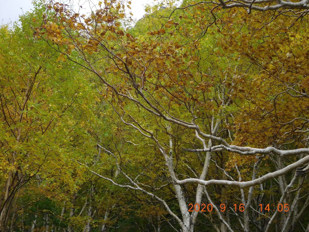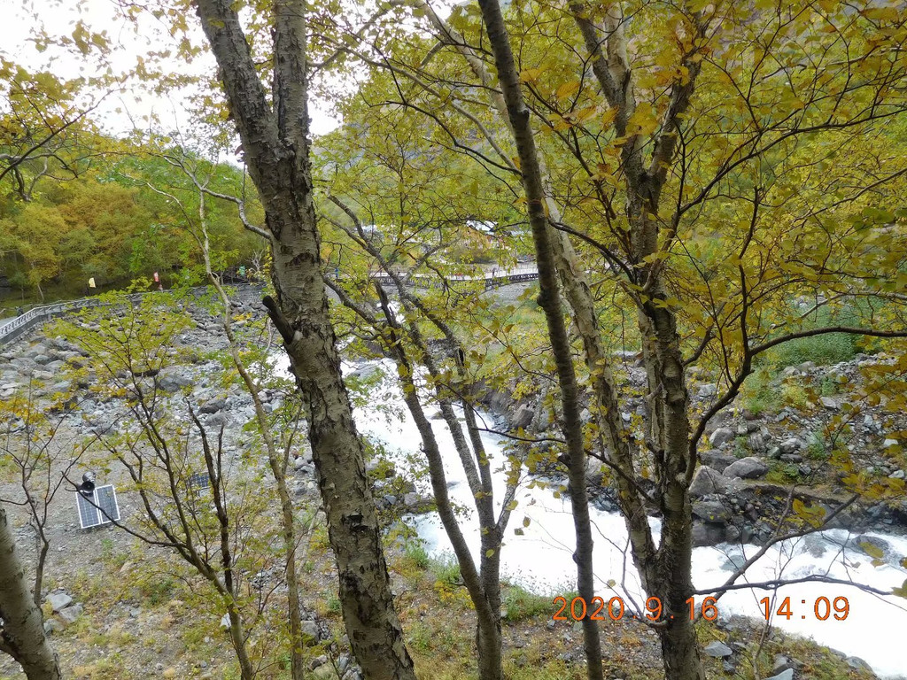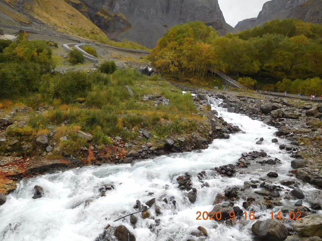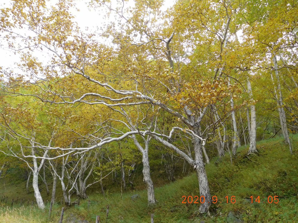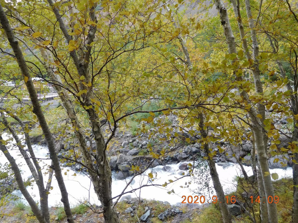 说句废话,如今景区都流行观光车、环保车,不让私家车或旅游大巴开进来,除了保护景区环境之外,当然有经济利益存在。坐上景区的环保车,车道两边林木茂盛,随着海拔的升高,由针叶林带逐渐过渡到岳桦林带。成片成片的树林,变黄的树叶,黄叶和绿树互相映衬,很是好看。