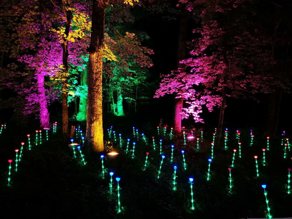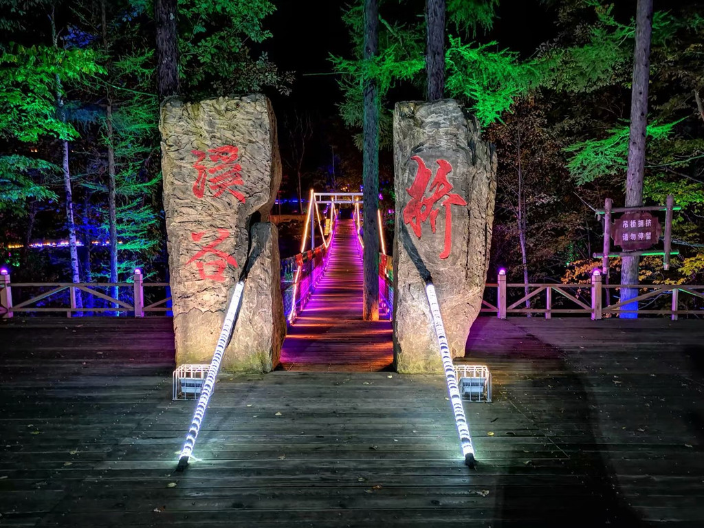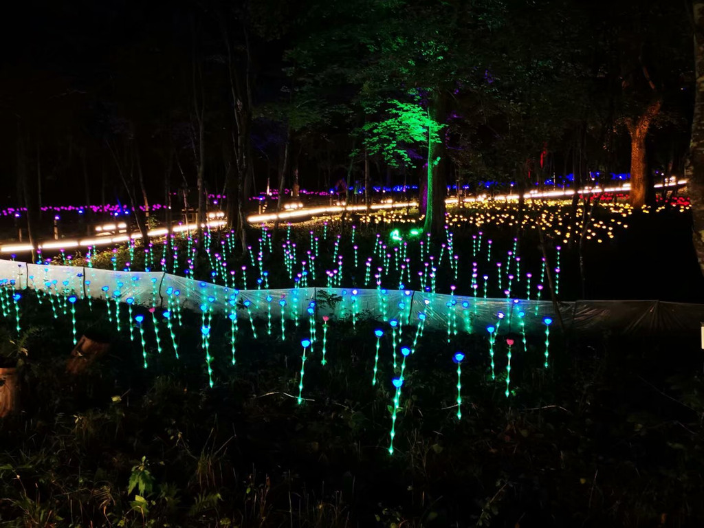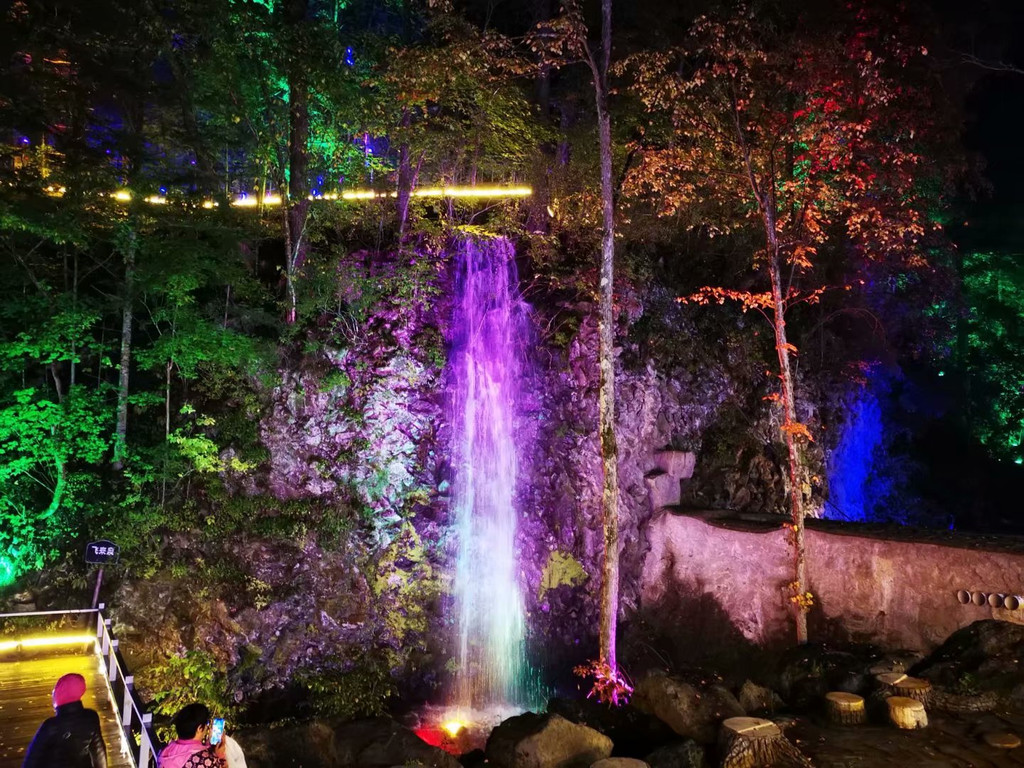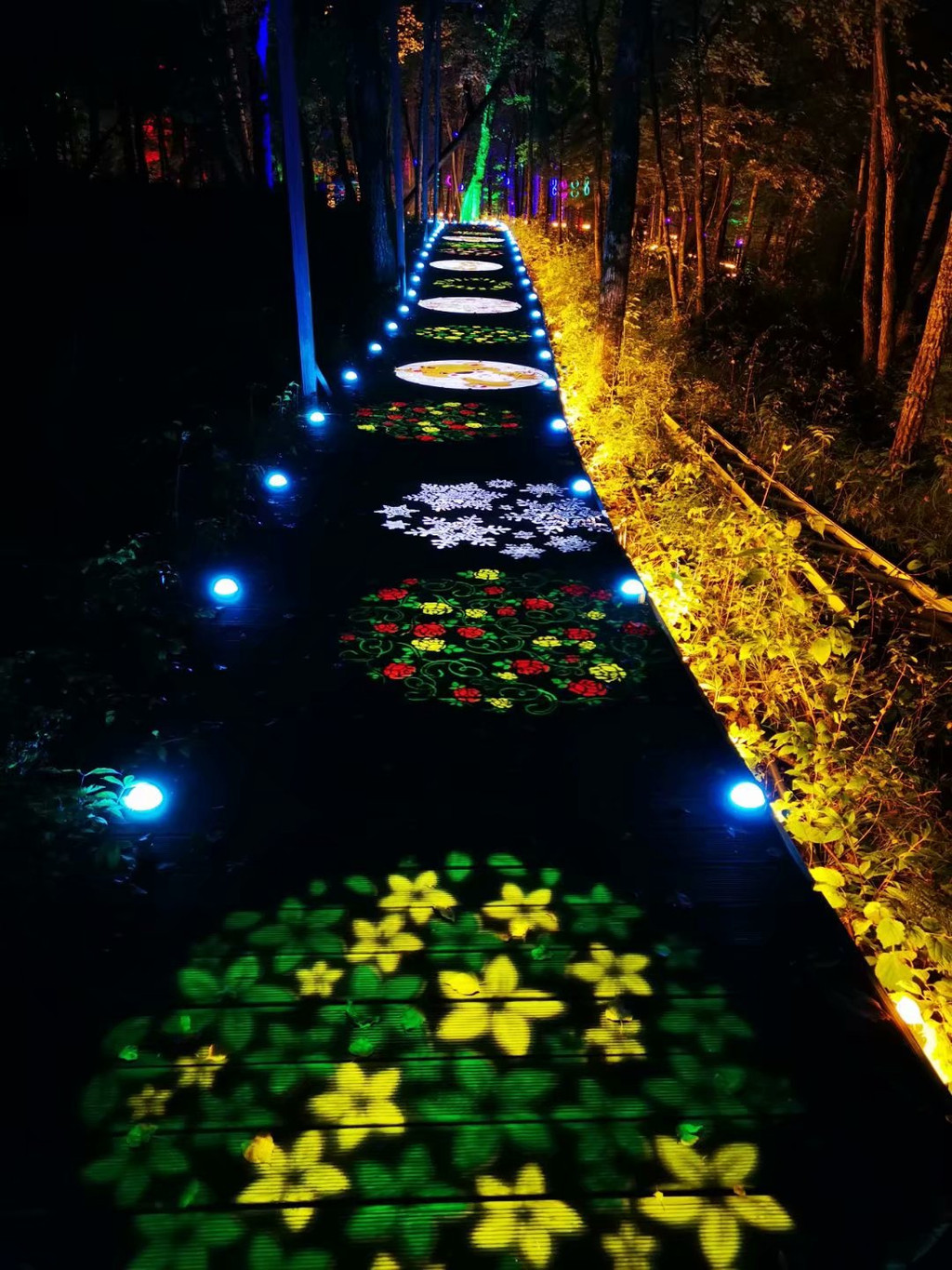 晚上,我们就去看《长白山梦幻森林夜景》了,上当受骗的感觉。所谓的梦幻森林夜景就是圈了一块地,搞了个音乐喷泉,水柱喷得有高有低,但没有什么花样,那个瀑布,导游说是长白山的水源,还建了一座吊桥,走上去晃得厉害,四周的灯光,地面用灯饰制造的假花不伦不类,如果走快点,半小时就可以逛完了。广州的、杭州的,青岛的灯光秀科技化程度高,比这里漂亮几百倍,还是免费的,我们大老远飞过来,还得另外花钱看,你说我们傻不傻?要知道大自然的鬼斧神工永远胜过人为景观。