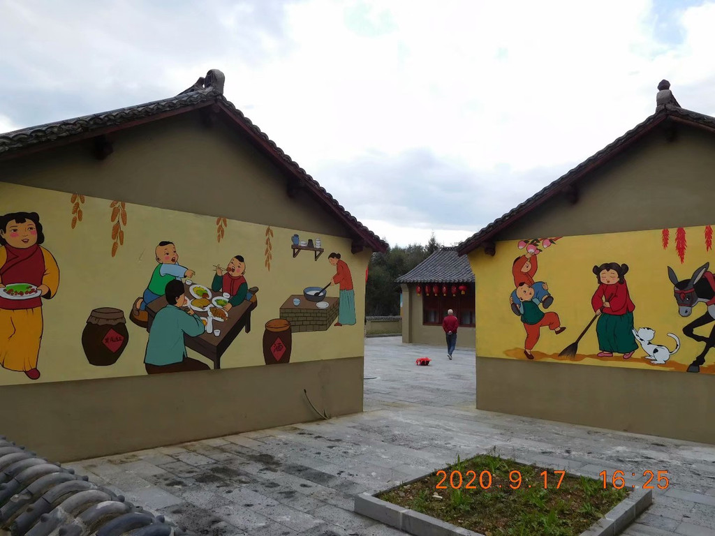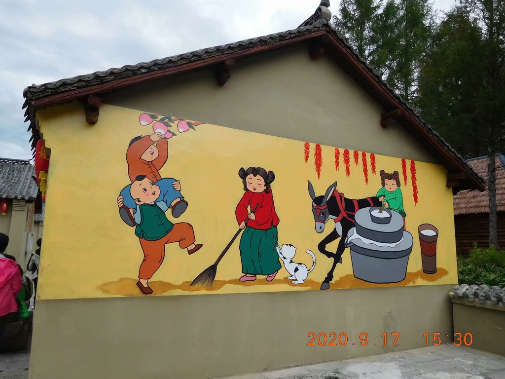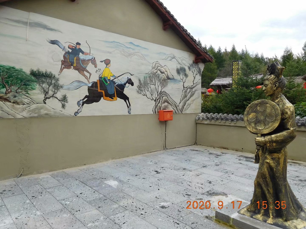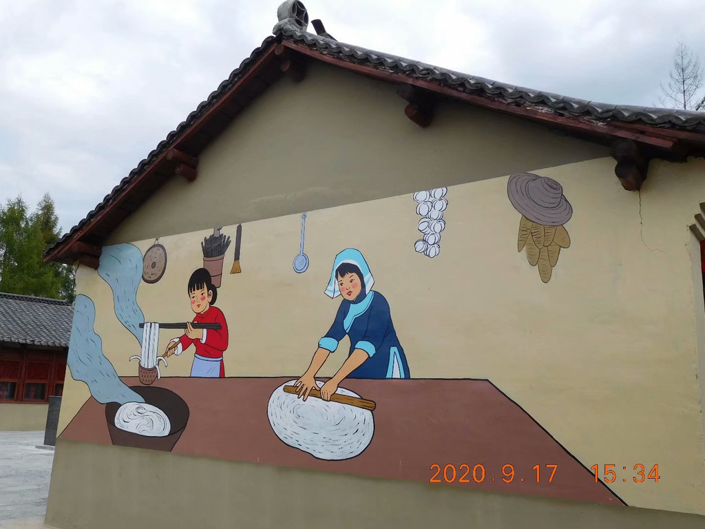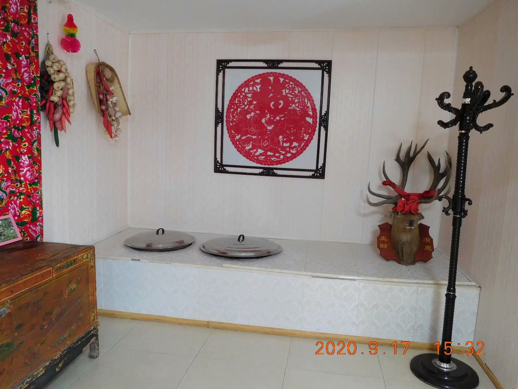 满族人盖房子讲究坐南朝北、左西右东,西间称西上屋,中间称堂屋,东间称东下屋。墙上都画着反映满族日常生活的画面和抗日场面,乡土气息浓郁,人物活灵活现。