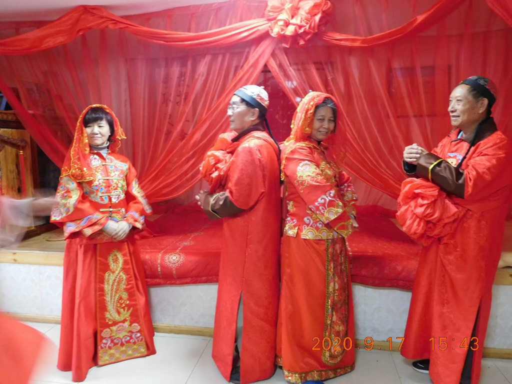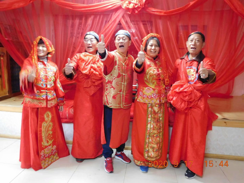 在满族人家,我们体验了满族人的结婚的礼仪和习俗(同团的“党代表”今天是第二次结婚了,中午是朝鲜族婚礼,现在是满族婚礼,一日之间娶两妻,真把他乐坏了)。