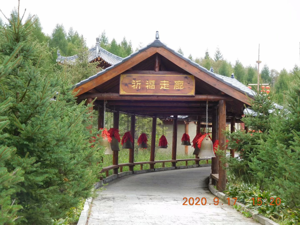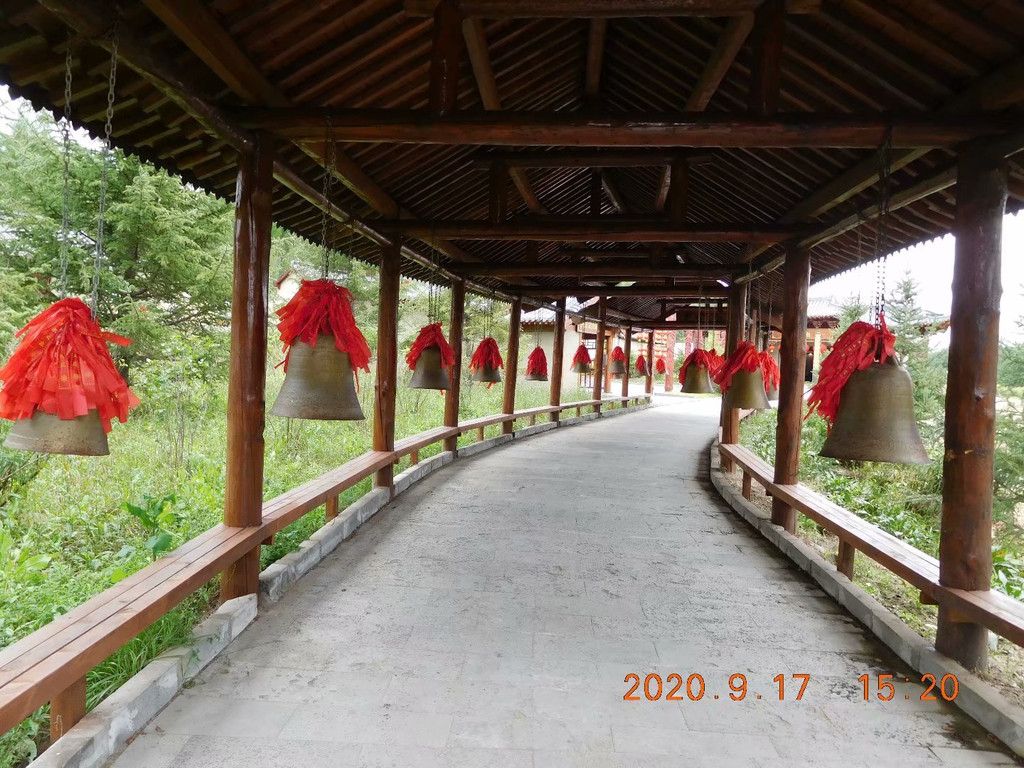 经过祈福廊,祈福廊左右两边挂满了铜钟,每一个钟的响声是不同的,花姑娘让我们敲一敲钟,祈祷平安健康发财。