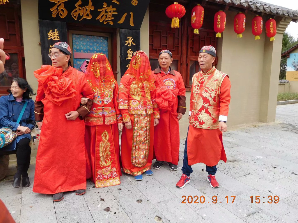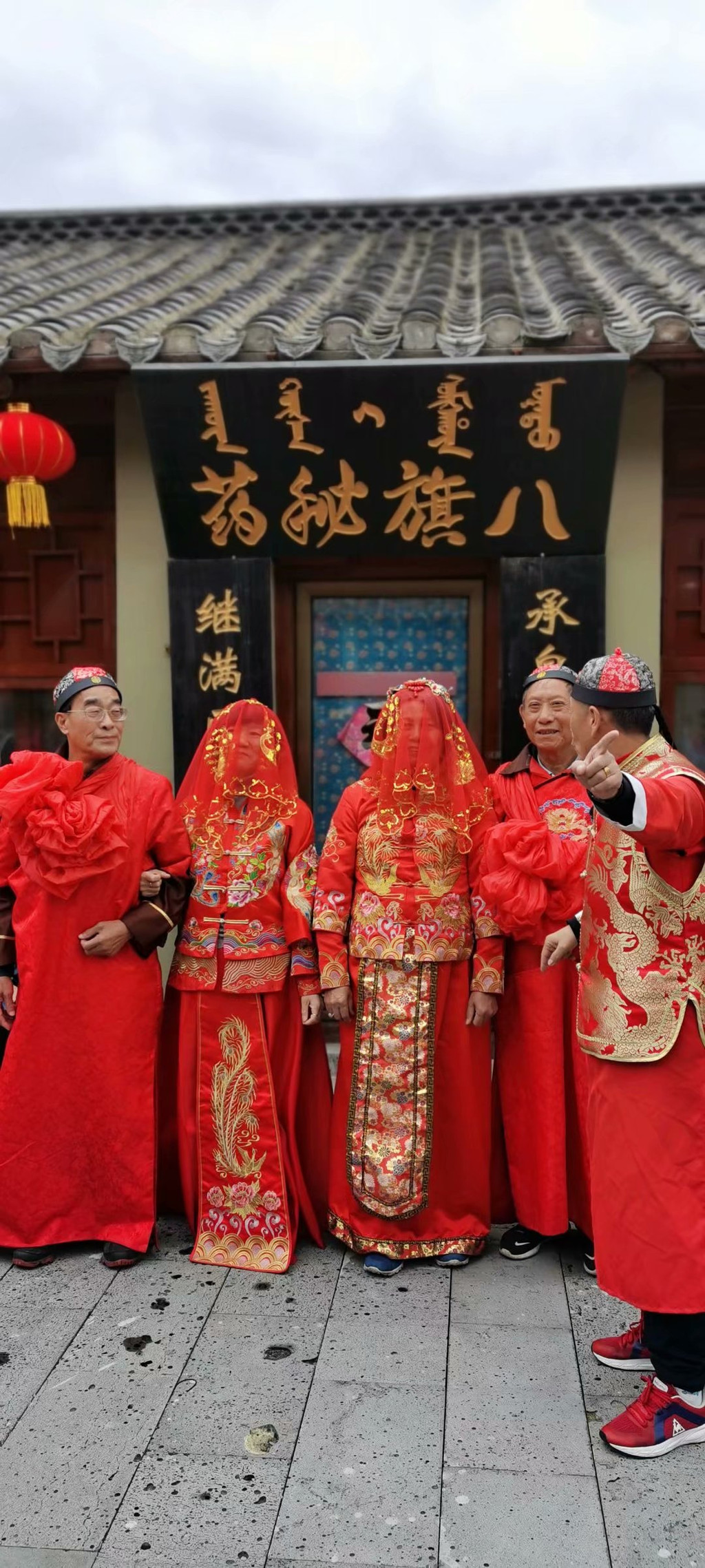 主持婚礼的是郭老师,他介绍说,满族对婚礼非常讲究,如今的婚礼一般也要举行三天,也叫三日婚,第一天叫“响棚”,第二天叫“亮轿”,第三天叫“正日”。今天体验的结婚仪式是已经简化了许多的,主要是把老一辈精华传承了下来。