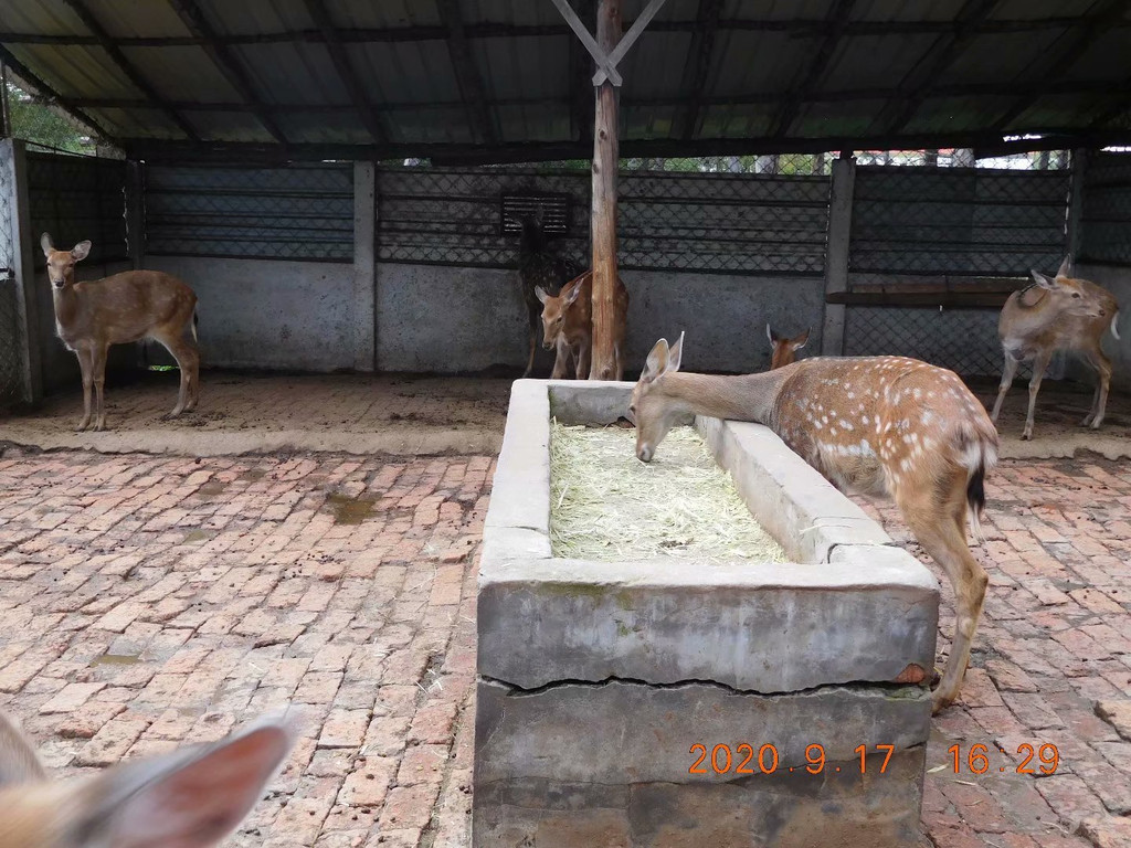 顺路走下来,经过东清寨,来到梅花鹿园。这里养了很多梅花鹿,有的头上长脚的已经被锯掉了。
