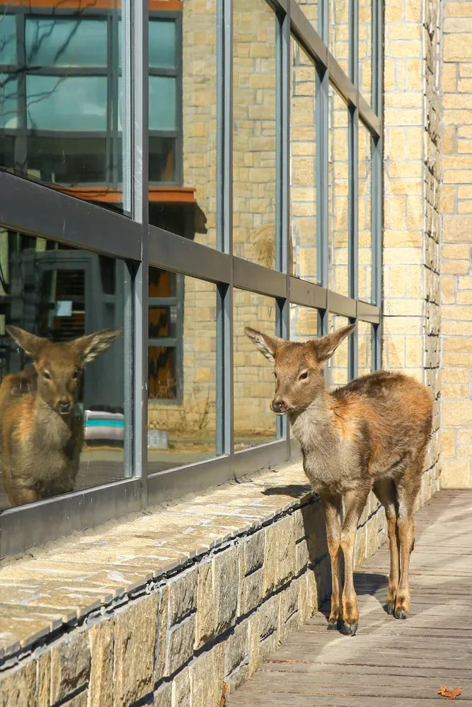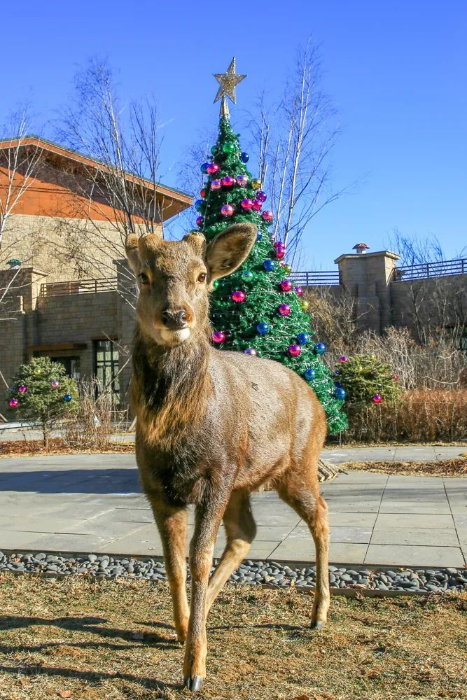 在中庭苑里面有可爱的梅花鹿“大壮”和“小可爱”,冬天和夏天的样子完全不同,尽管是晴天,室外依旧有些冷,但却不影响与梅花鹿互动,我把客房的欢迎水果切块,拿去喂它们,顺便拍点照片,灵动的梅花鹿特别招人喜欢。