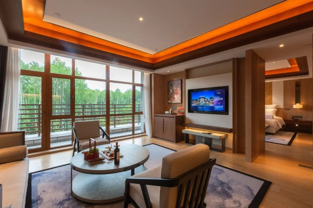 近期我前往长白山滑雪,再次入住了去年7月刚运营的长白山吉视传媒铂尔曼度假酒店,距离长白山西景区集散中心只需要车程3分钟(酒店提供接送服务)。