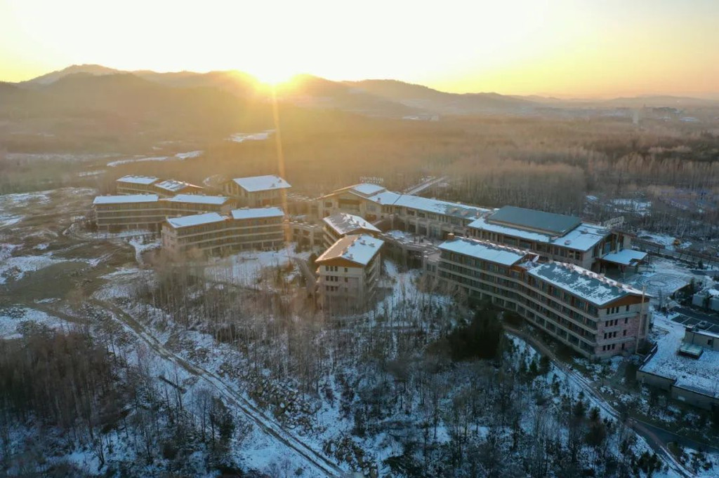 冬天更是另外一番美景,虽然去的时候冰雪还没那么大,不过依旧不影响度假体验,在酒店航拍,还可以看到长白山。