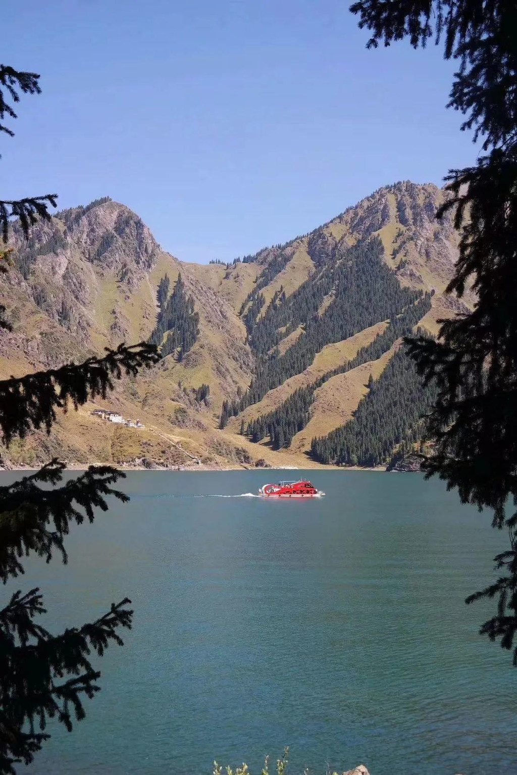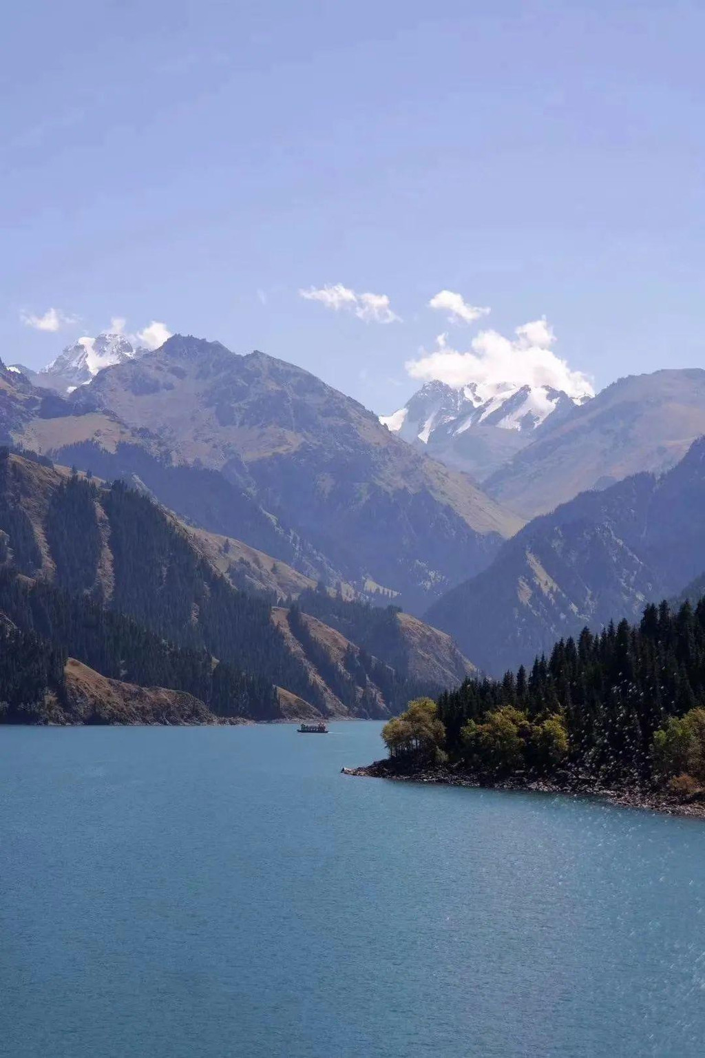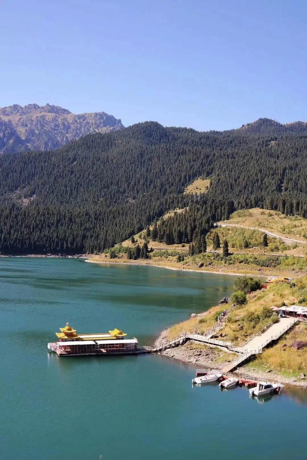 葱茏环拥,碧绿如玉的天山天池: