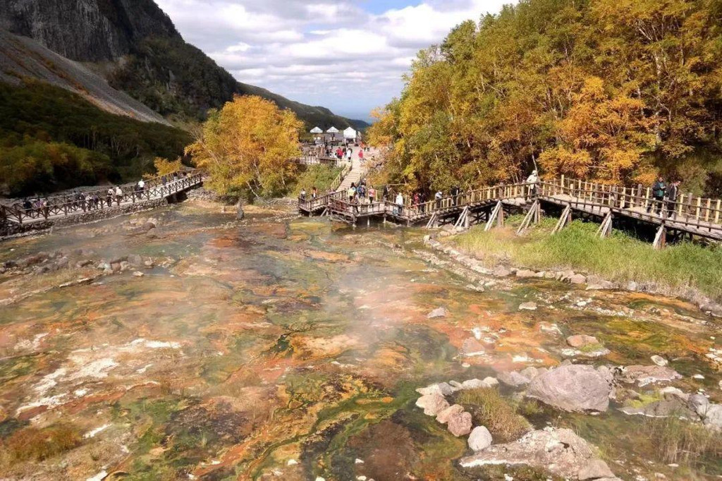 在长白瀑布以北900米处,二道白河上游的河谷两岸,看到最多的除了层层叠叠的岳桦,就是层层叠叠的“白雾”,以及雾下密密麻麻的、五颜六色的泉口,那景象就像一锅即将沸腾的蔬菜汤,甚至让人略感不适。