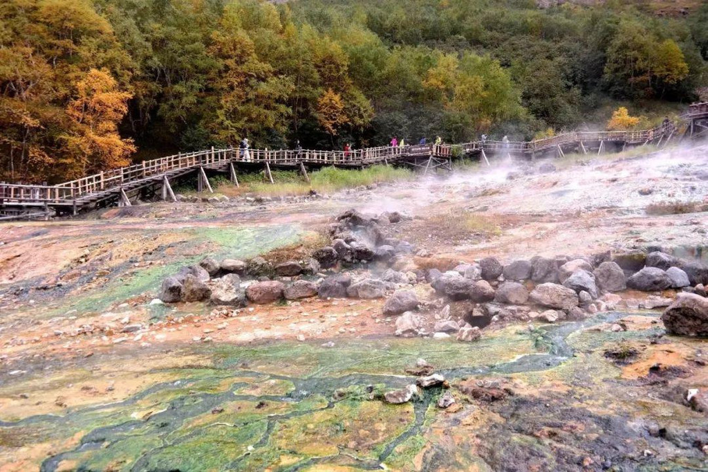 瀑布景观到此为止,接下来我们再溯游而上,去看看长白山的另一大奇观——温泉。