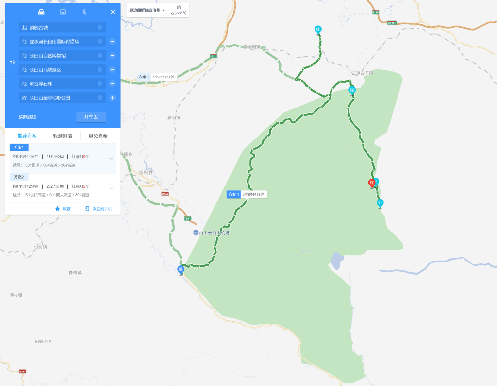 地图包含了4天行程主要的景点方位,可见,大多集中在长白山北坡景区,此外,还有哪些景点呢?