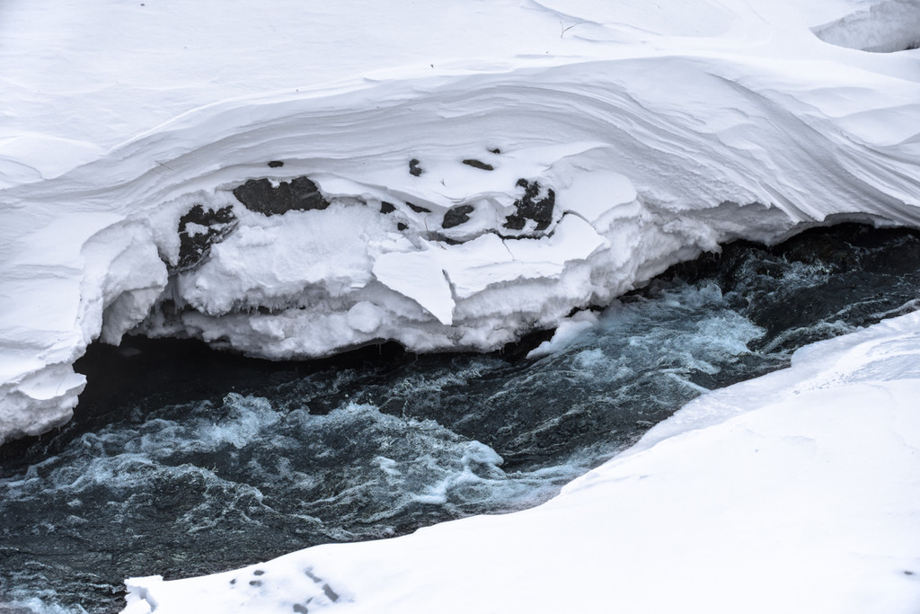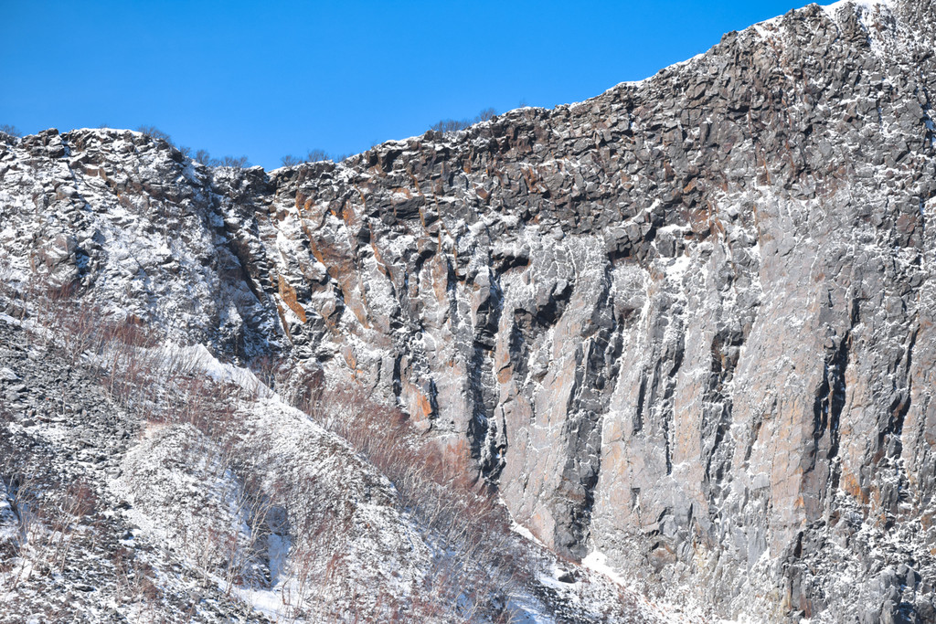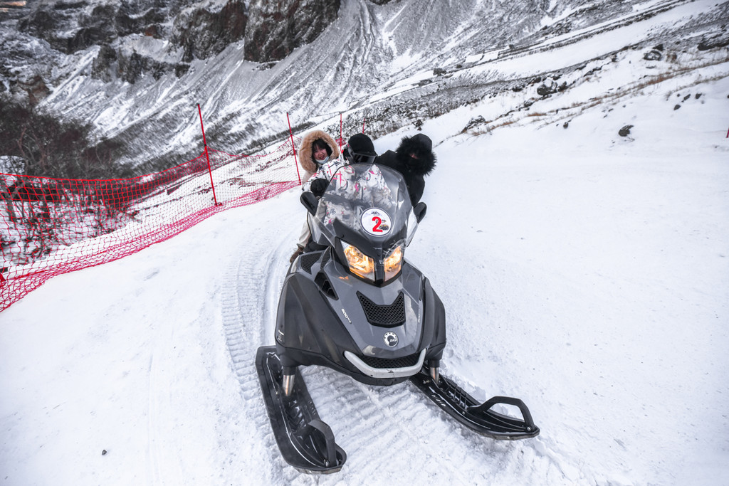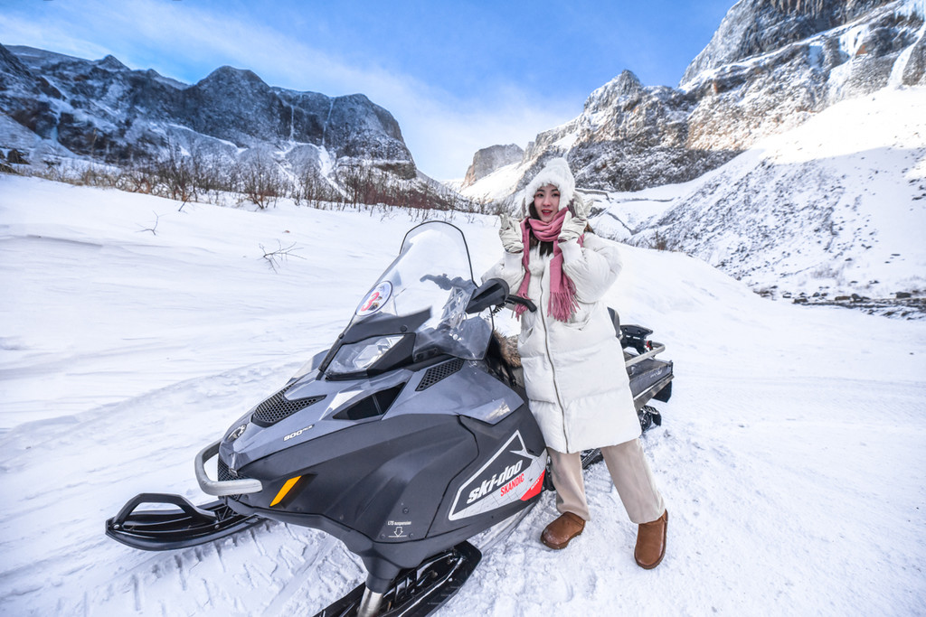 一路驰骋在冰天雪地之间,这种如入无人之境的独特体验,别提让人有多兴奋,那种心情无以言表。乘坐雪地摩托,翻山越岭,驰骋山麓雪道后,才能亲见这一胜境。山脉在阳光照射下,线条硬朗,向光处山石裸露,背阴处仍是白雪皑皑。夏季瀑布以及水潭颜色比蓝天更蓝,冬季显得黝黑,却更有原野秘境之感。