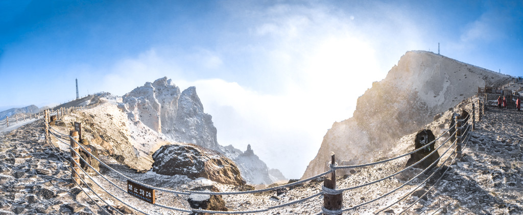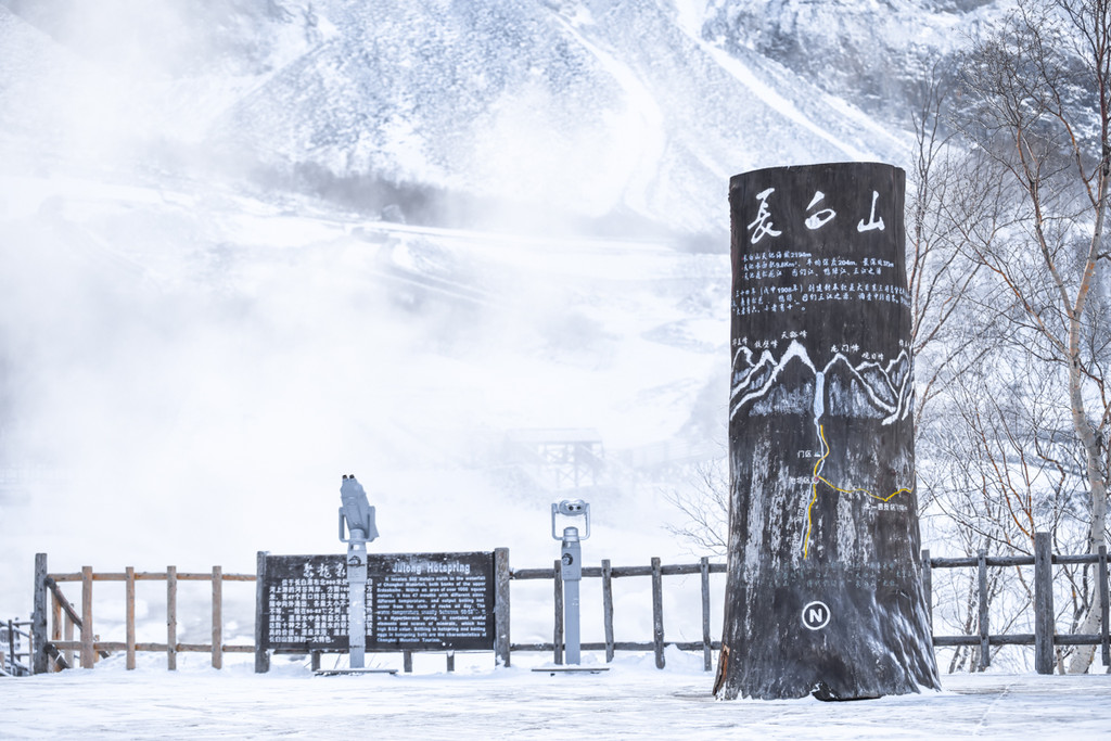 但,每年长达6~7个月雪期的长白山,想要一睹天池真容,难于上青天。冬季时节,十之八九,是无法俯瞰天池旖旎风光。不过,留有遗憾,也未尝不是一种深刻的回忆。山上、山下温度达20度,让久在南方的游客,感受到天寒地冻极限气候的震撼。