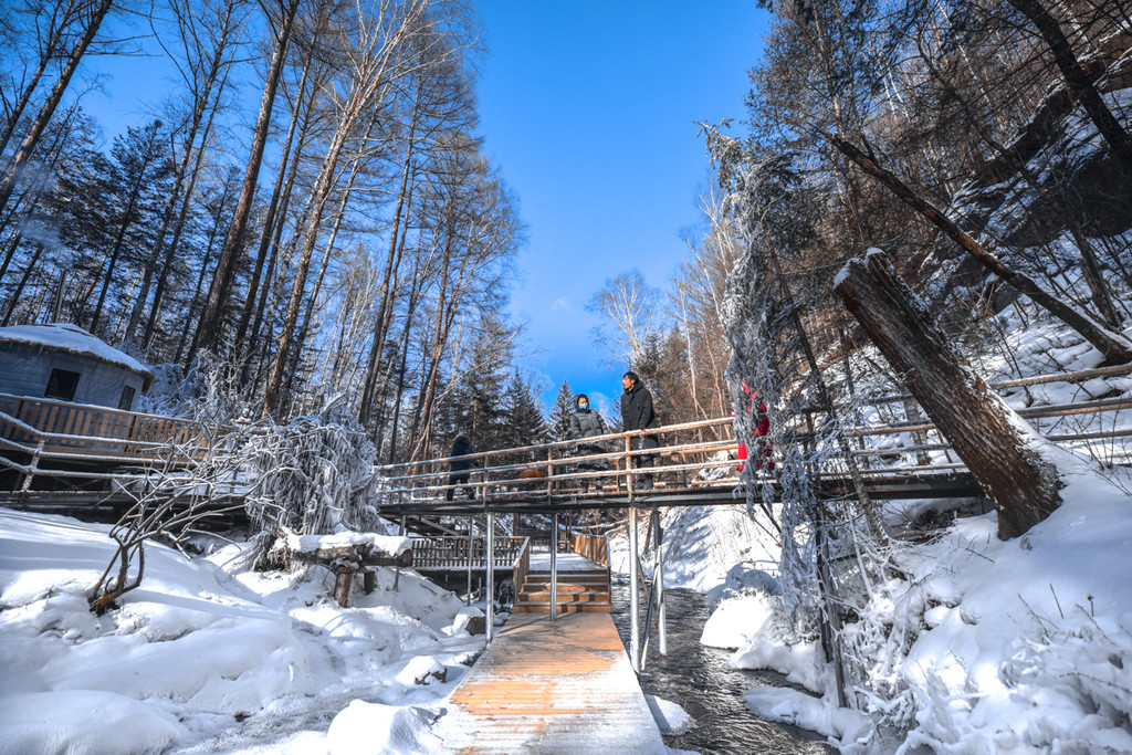 火锅有清汤、麻辣两种口味,辅以东北山野菜、冻豆腐、当地特有金鳟冷水鱼、景区配备牛羊肉五花肉、东北手擀面等,在冰天雪地里,绝对是大快朵颐的饕餮大餐了。这种,玩在当地、吃在当地、吃在当季的体验,绝对难忘。体验冰泉火锅需提前预约;林间仅限包房处可享用火锅,其他禁止吸烟、明火。