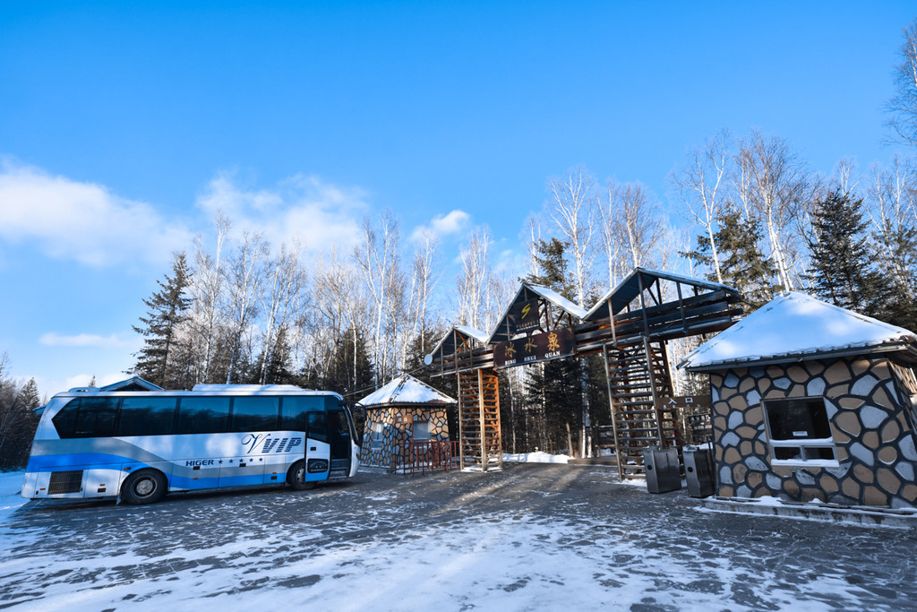 来长白山第一件事,就是抗的了冻(温度低得多)、经的起重(衣服穿得多),然后就是不耽误一分钟——严格做好时间规划,毕竟在这每天16点多,就临近日落。所以,刚一下飞机,与提前联系好的出租车师傅会师,马不停蹄去往第一处景点。当坐上温暖如春的出租车时,那种冰火两重天的感觉,即刻上演。经过40分钟车程,60码的“奔驰”,在全装雪地胎的出租车、经验丰富的师傅装载之下,江南水乡人终于踏实了北国长白山这片神圣的土地。