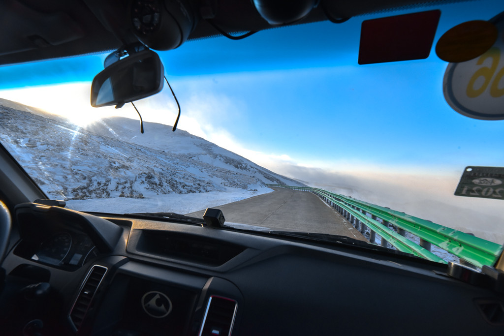 但凡太阳一下山,这个温度降得就很快。都说东北地区,冬季只要不刮风、穿的够厚,那还是可以适应的。为了验证一下,我发现,正常行驶的汽车车窗内,在经历几分钟的疾驰后,结起了霜,这也是难得一见。尤其是在户外雪地徒步、站立一会后,再坐进车中,仿佛身体都有要被融化的感觉。