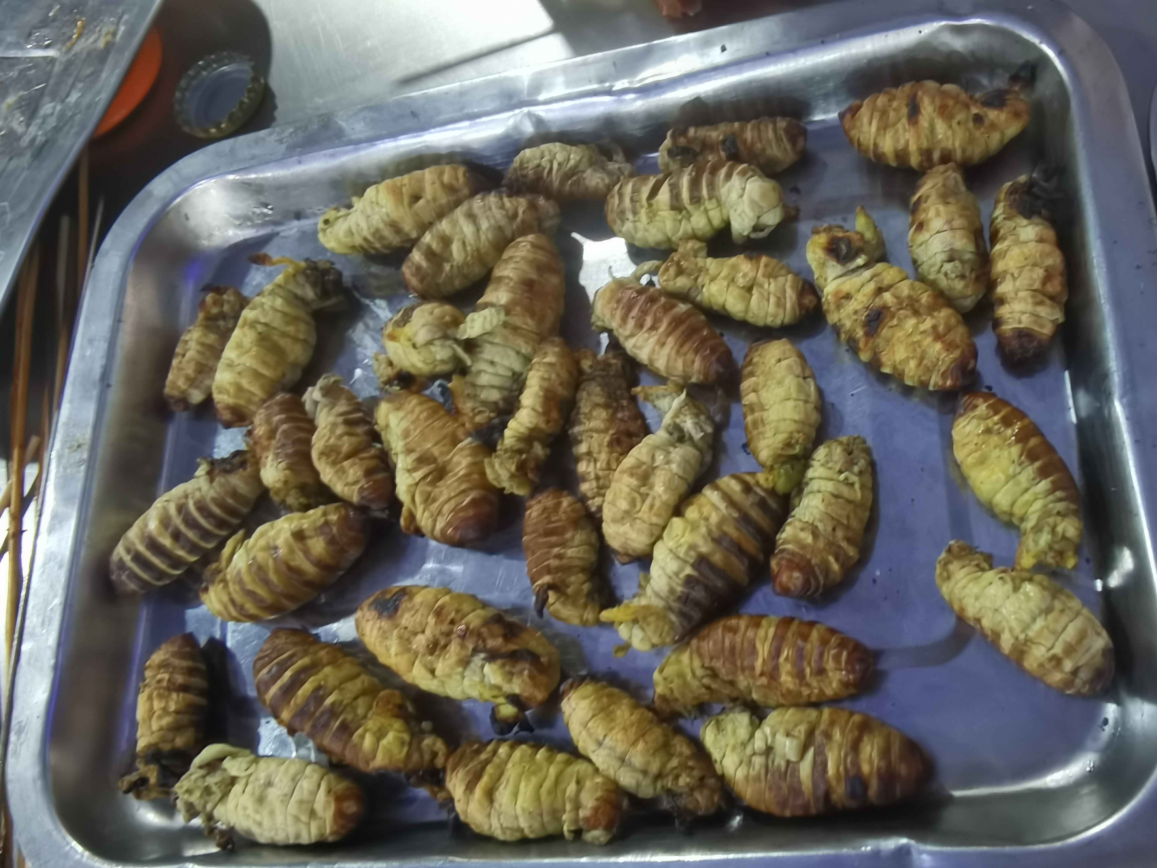 8月23日,出发前去修配厂借了个简易充气泵,时间较晚,中午才到本溪境内,路边随便找个面馆就餐。继续按导航行至丹东宽甸,入住汉庭酒店,晚上,酒店出门左转,交通岗右转,到当地繁华的夜市吃烧烤。值得一提的是,我们在串店吃到小神仙,以前没见过,但是在当地很平常,怎么说呢,是未成年的蚕蛹,绿色的,很嫩很香,不便宜,晚餐消费145元,我们吃的路边摊不是很好,除了小神仙,其他都烤的很糊弄,鸡头都不熟,建议去夜市两侧的烧烤屋,用炭火自己烤。