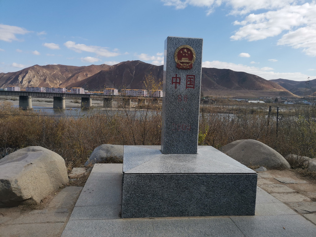 界碑位于日光山国家森林公园山脚下,背面就是图们江,江对岸就是朝鲜。