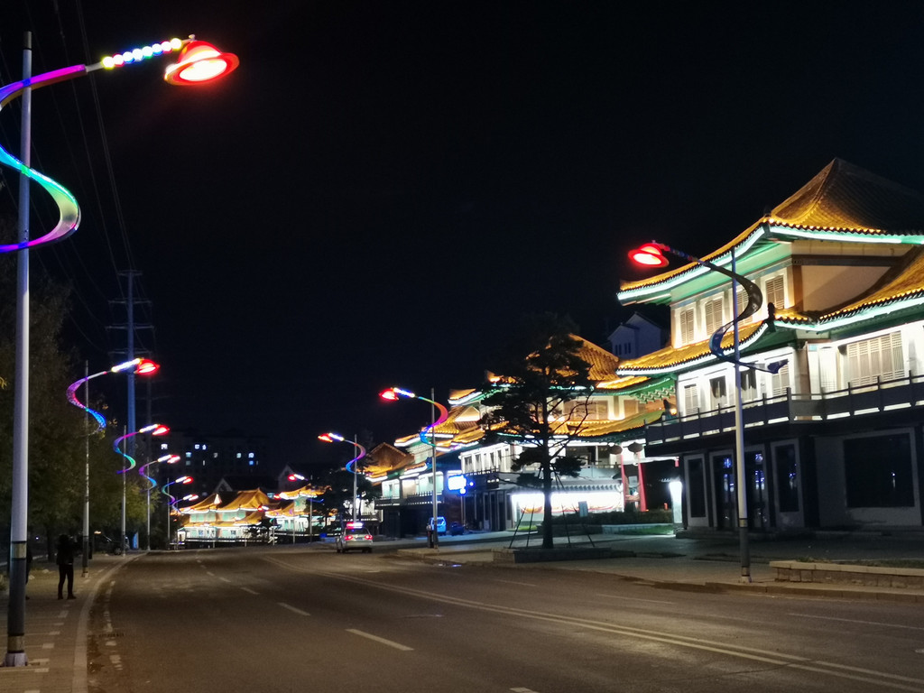20:00餐馆出发,步行返回延边宾馆。(回宾馆的路上,途经朝鲜族民俗园,虽已闭园,但是外观灯光很美,包括道路两旁的景观灯,很是少数民族特色。)