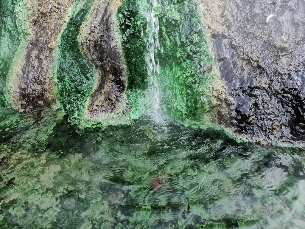 聚龙泉距离震耳欲聋的长白瀑布不到二里,奔腾咆哮的白河檫边而过。它以绚丽的色彩把周围的岩石、沙砾染的金黄、碧蓝、殷红、翠绿,闪烁着五光十色,散发着蒸腾热气,格外愉悦游人的眼目。