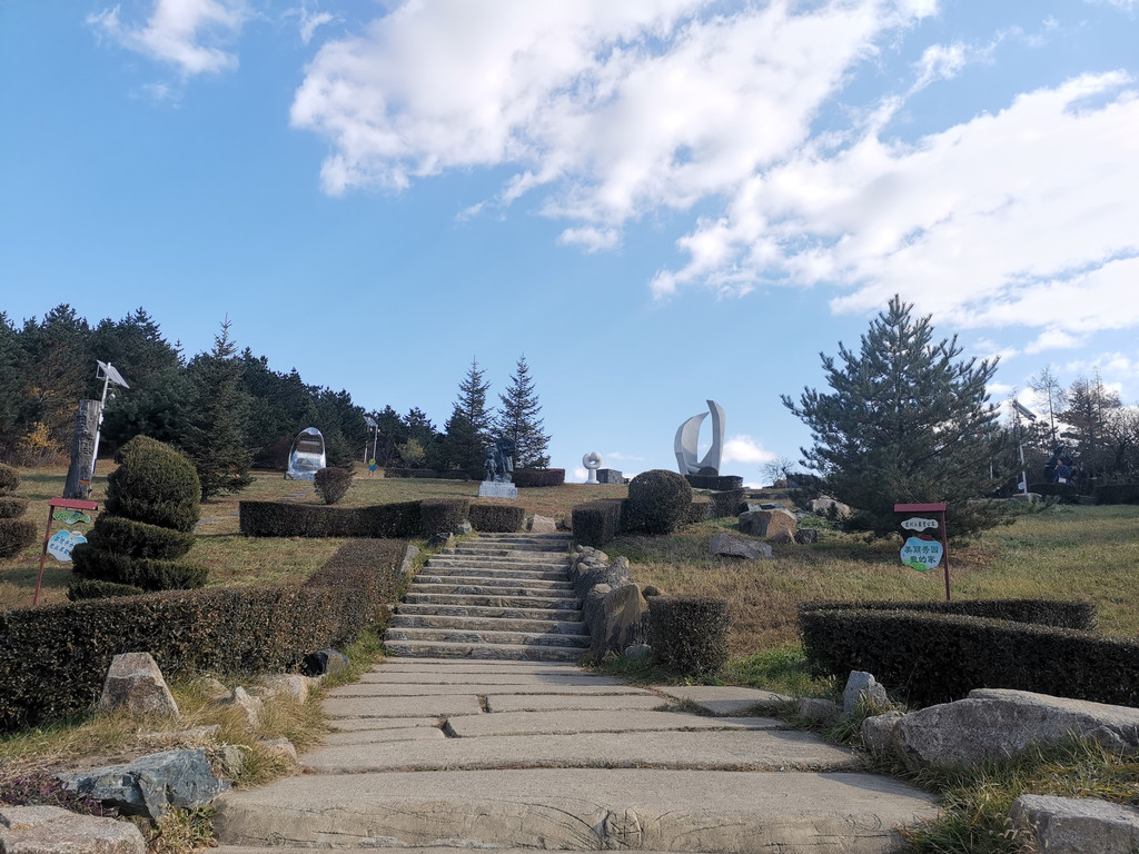 日光山位于吉林省延边州图们市,距城区4.3公里,海拔高度只有390米,但奇峰兀立,怪石嶙峋,林木茂盛,登上峰顶极目远眺,图们江水在脚下蜿蜒东去,两国风光尽收眼底。
