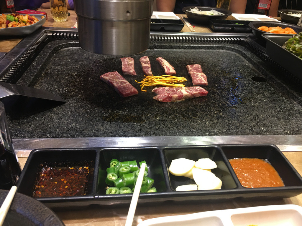 富太雅石板烤肉(旗舰店)装修富丽,环境雅致,肉品质优,三色丸子是这家的特色小食。