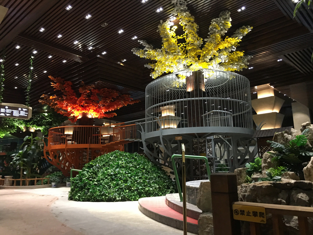考世茂民俗山庄的建筑物和内部设计皆体现朝鲜族民俗风情,一楼设民俗展示厅,二楼为中餐包房和会议间,三楼为朝鲜族民餐、日餐、韩餐包房,四楼为家庭式客房。家庭式客房,有朝鲜族民俗包房和中国式家居包房。(有部分服务员为朝鲜籍,会说不太流利的中文,服务态度很好。)