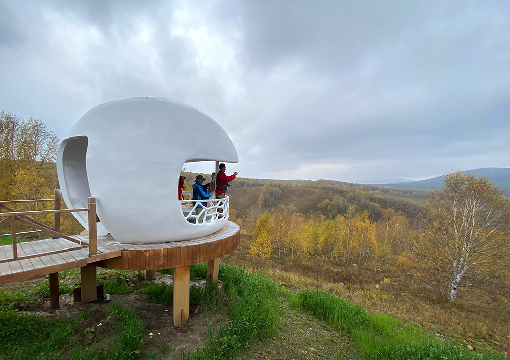 从坝上到克什克腾旗120公里,当地政府打造了一条“中国北疆风景大道”,在风景秀美的地方都建立了“驿站”,既可供游客歇脚,也可以欣赏美景。