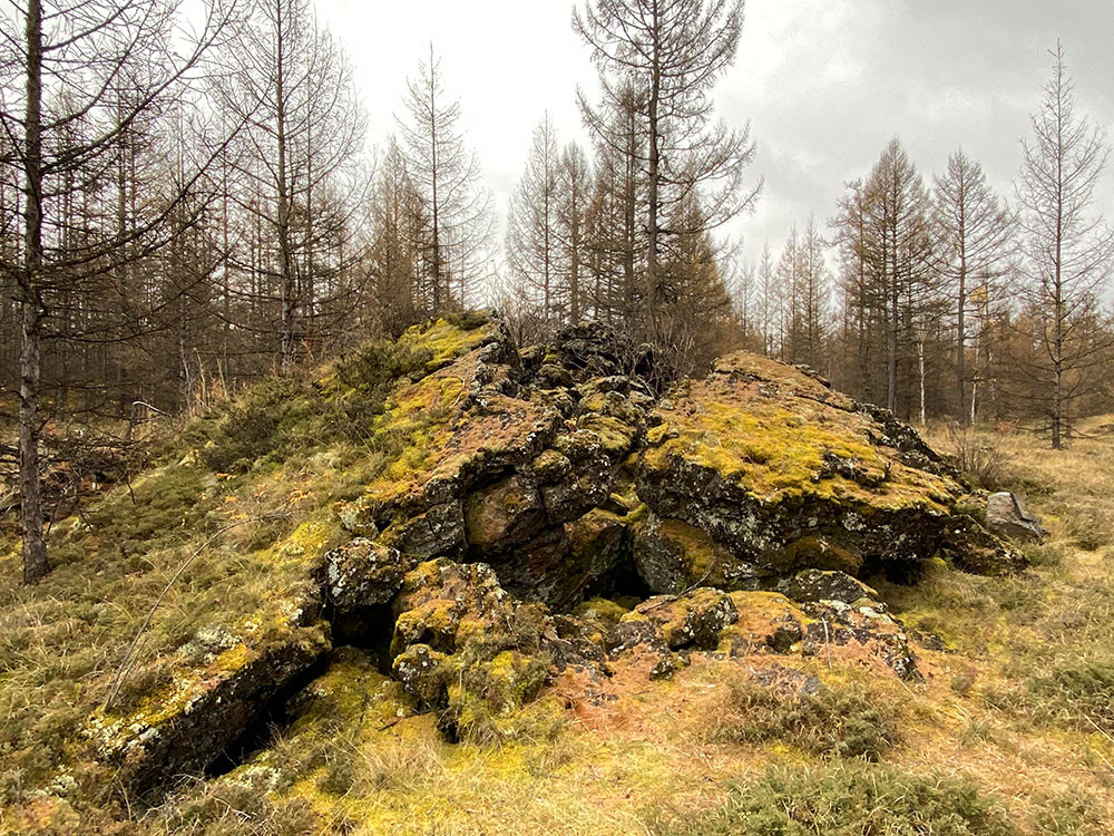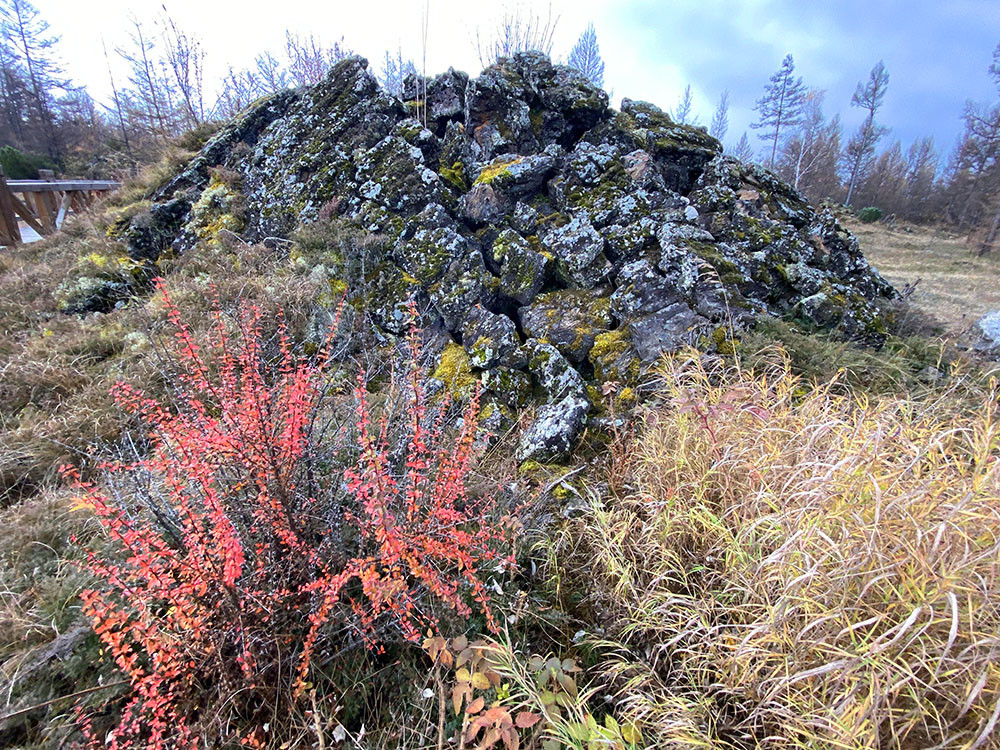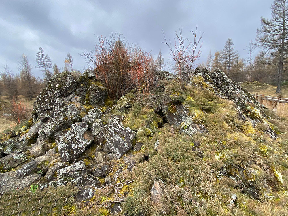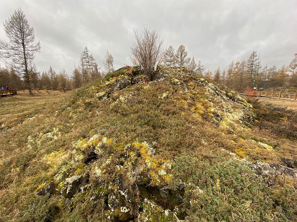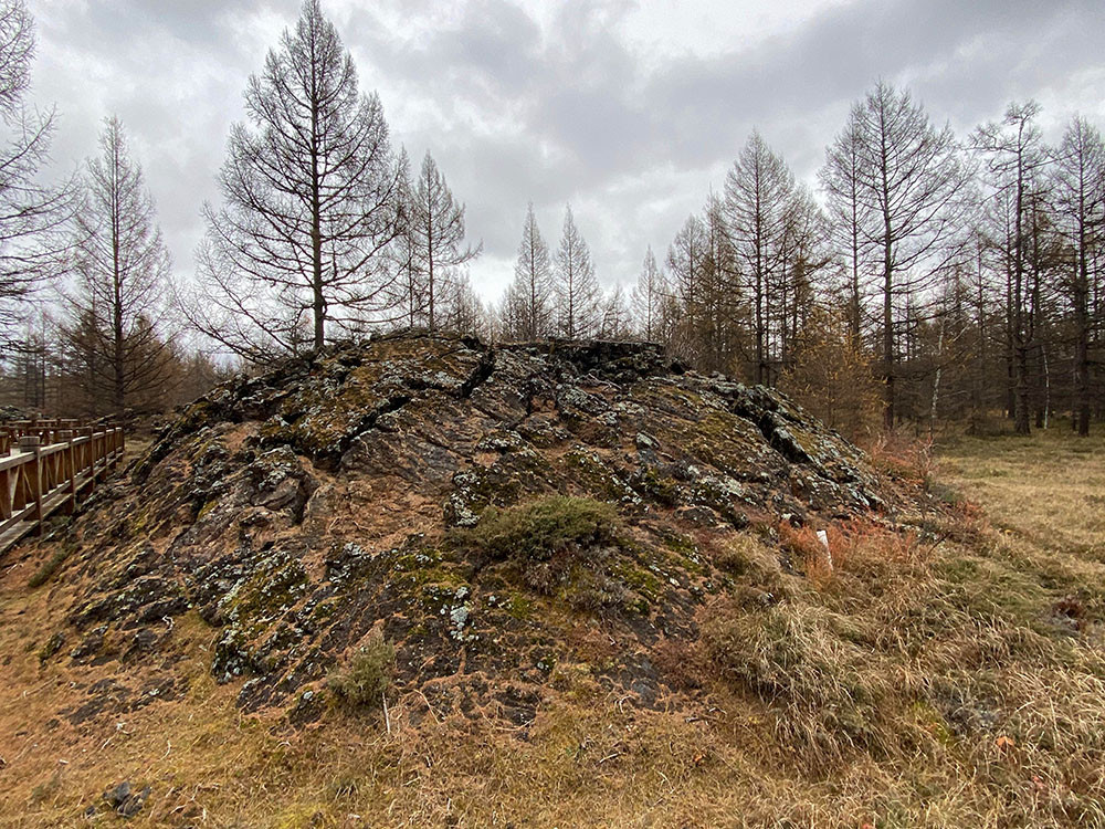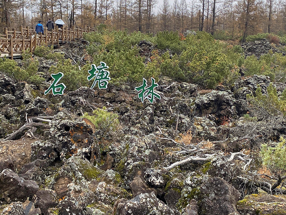 石塘林对过的园区内有许多墓冢样的熔岩鼓包,官称“熔岩冢”,是因为当年火山爆发时,熔岩流中局部气体聚集,形成气囊,使熔岩表面隆起,形成这种独特的构造。