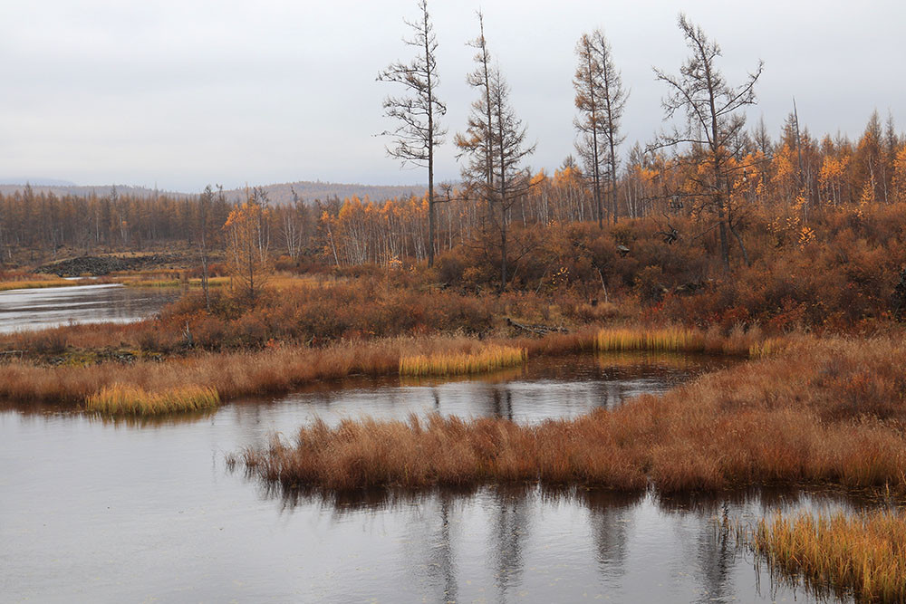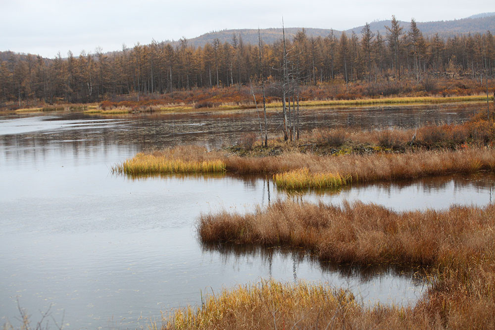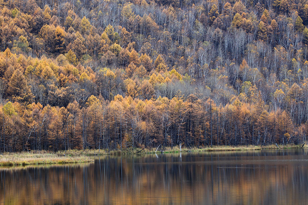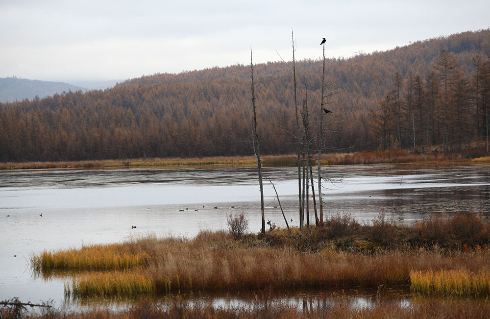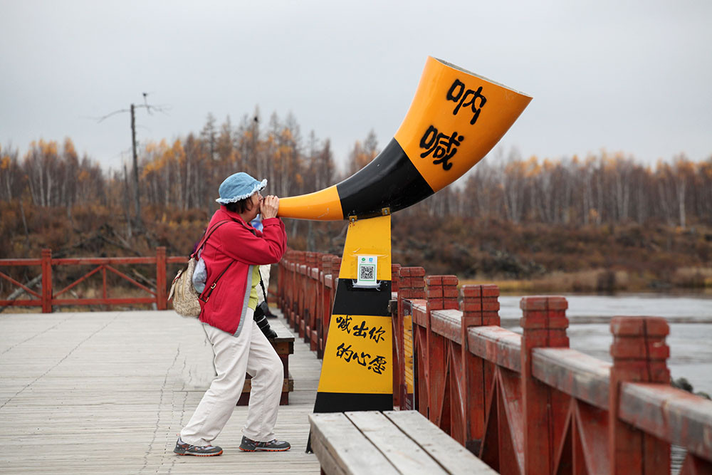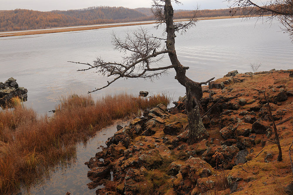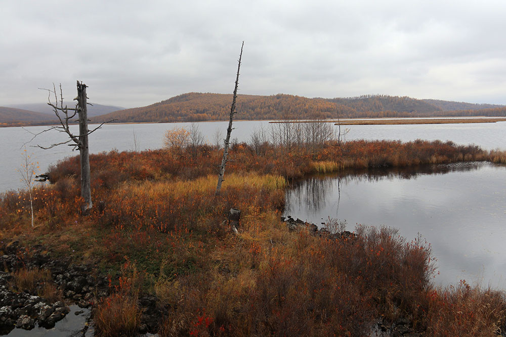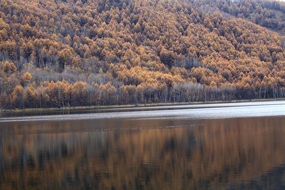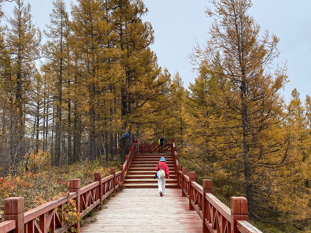 乘交通车回到兴安服务区,在那里吃过午饭,自驾车去游览杜鹃湖,湖畔高大的杜鹃在秋风中瑟瑟发抖,湿地上,枯黄的灌木丛昭示着寒冷天气的来临。