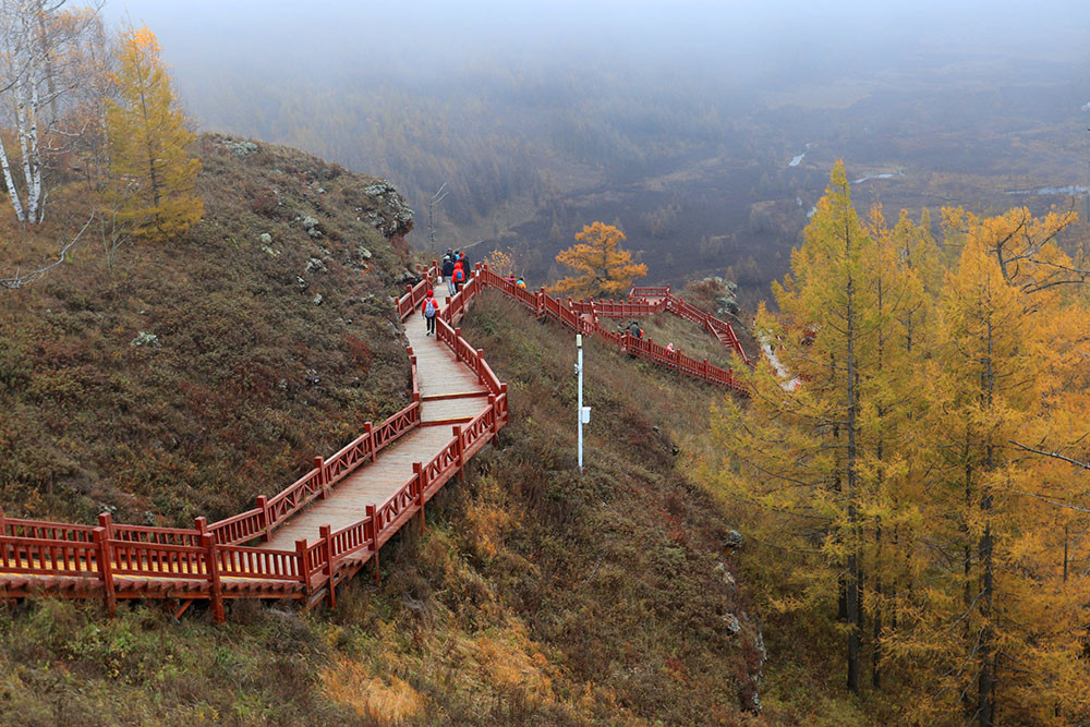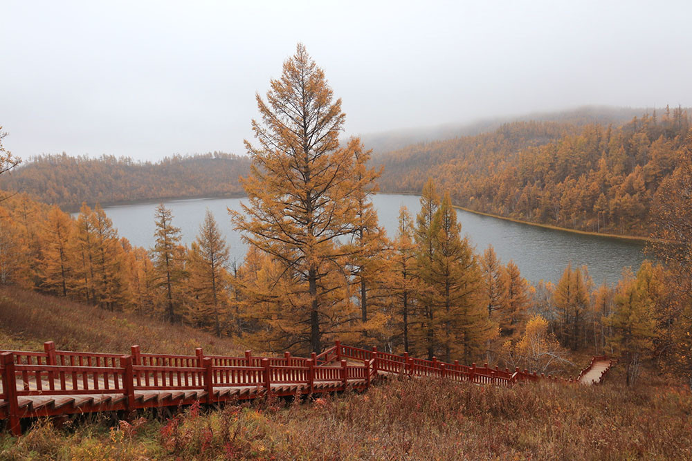 回去吃过早饭,开车去兴安服务区,在那里换乘景区的大巴车,第一站去造访驼峰岭天池,那是阿尔山的名片。