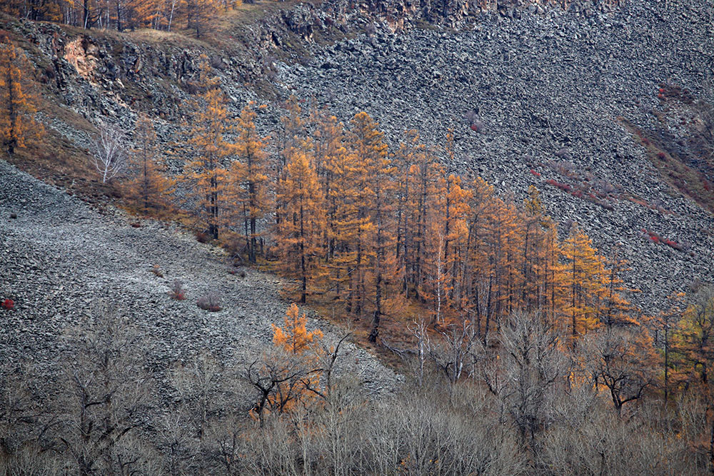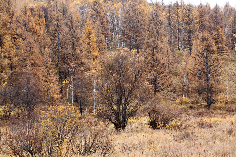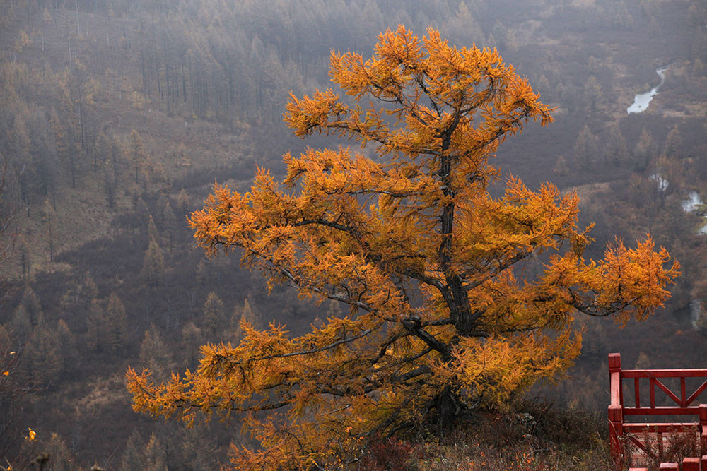 今年的气候有点反常,和九年前是同一天来大峡谷,落叶松却是一幅衰败的样子,生机全无。