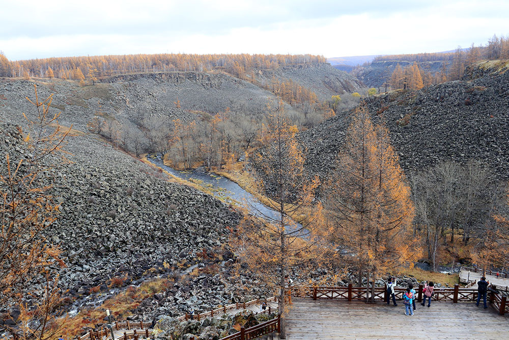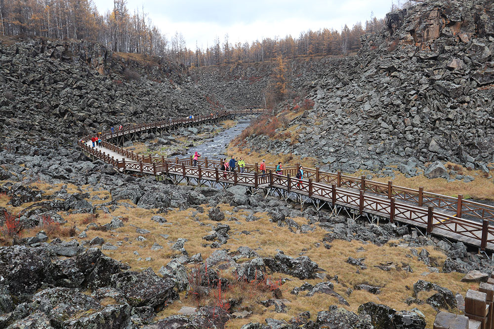 不同的是谷底铺上了木栈道,再不用从熔岩上翻越,树木虽枯,溪水如旧,沿着栈道前行,依然是多年前的样子。