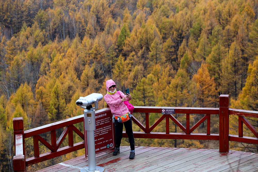山上的秋色正好,漫山遍野的落叶松黄绿过渡,正是漂亮的时候。今年受疫情的影响,游客不多,我们沿着山脊边走边拍,享受这难得的宁静。