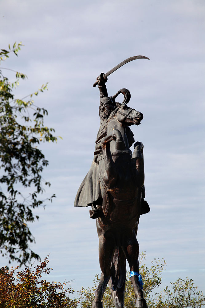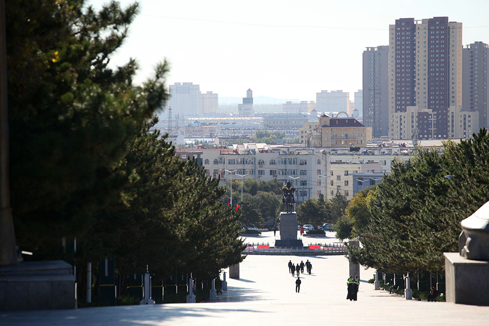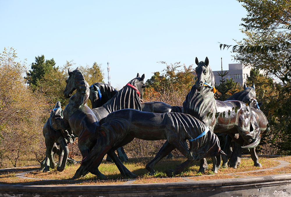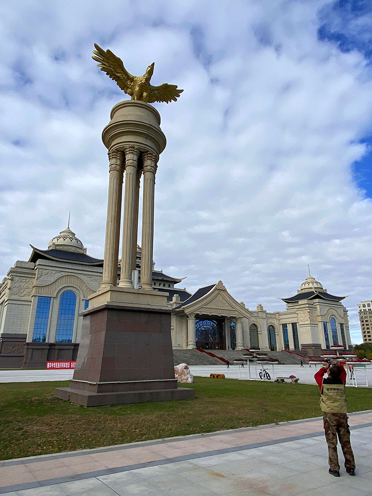 路的两侧有两组雕塑,一侧是嘶鸣的战马,一侧是威武的骑士,这恐怕都和成吉思汗的征战有关。