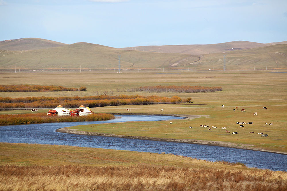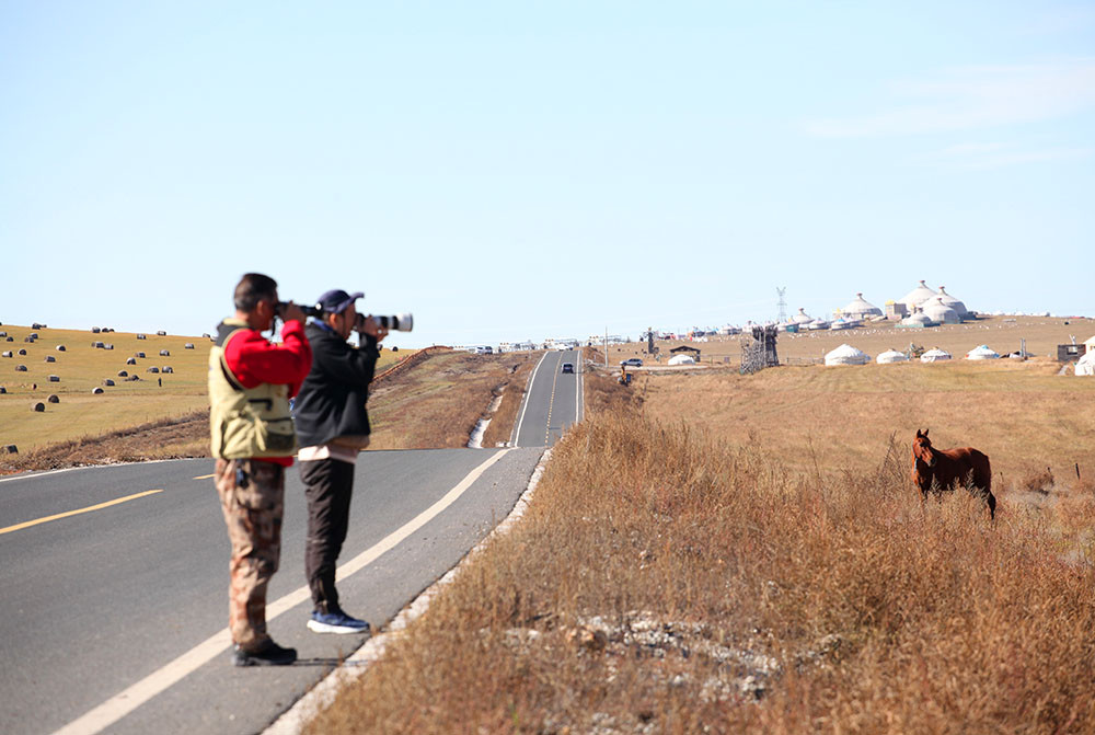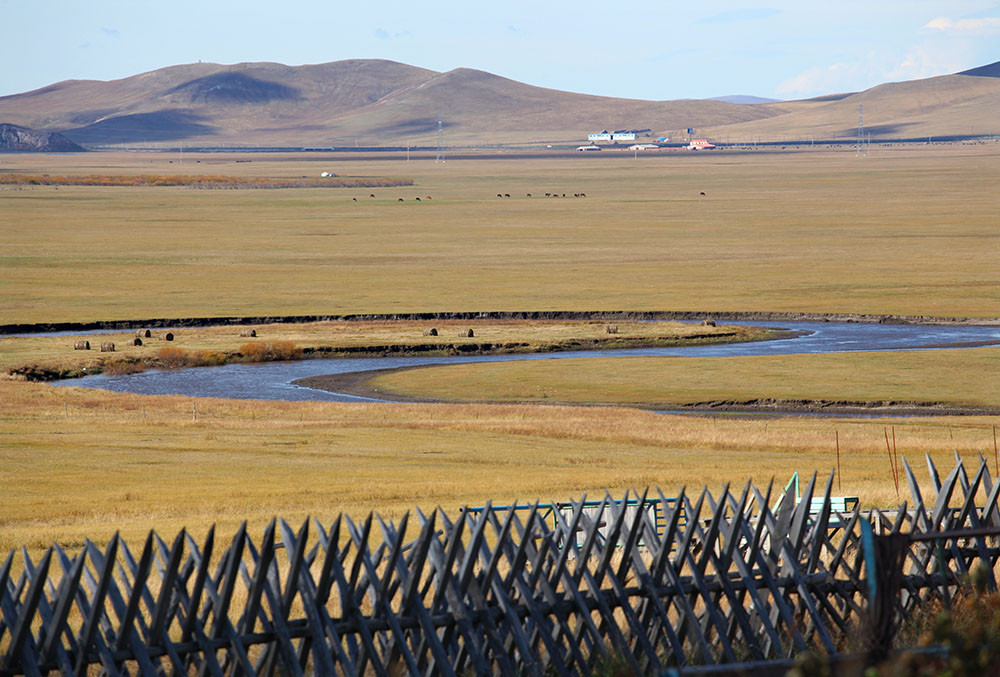 沿着草原上的小路,大家步行到草原深处的莫日格勒河畔,虽然不能走进景区,但这里也可以拍摄到莫日格勒河大拐弯的身影。