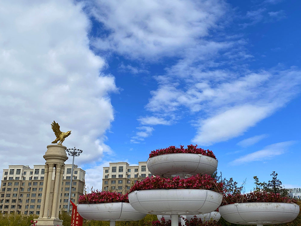 今天国庆节,阳光灿烂,不能辜负了这蓝天白云。 查了乌兰浩特的资料,只有成吉思汗庙值得一去,网上显示未开门,那就去打个卡吧!
