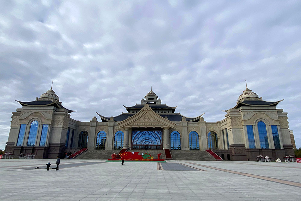 离开成吉思汗庙,我们来到宏伟的“乌兰牧骑宫”。 乌兰牧骑的蒙古语原意是“红色的嫩芽”,后被引申为“红色文艺轻骑兵”,全国第一支乌兰牧骑就诞生在内蒙古大草原,乌兰牧骑宫是全国第一个以乌兰牧骑为主题的文化场馆。