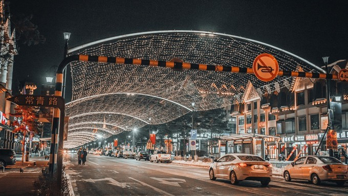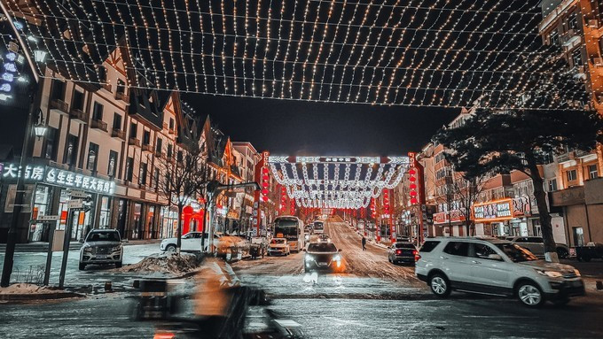 下图是二道白河镇的中心,吃饭一条街“星光大道”