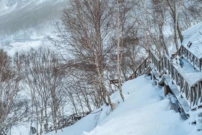 看看栈道,我当下动摇了3秒,要不要坐70元一趟的雪地摩托直接上去呢?
