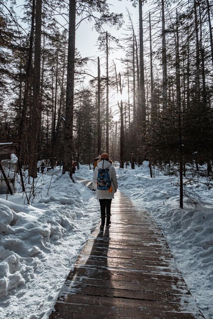 我们在北景区的最后一个景点。路线单程3km,冬天的森林就真的没啥看头了,考虑下午还要赶火车回 吉林 ,我们只走了短短几十米,就折返了。相信秋天这片林子,应该是绝美的。