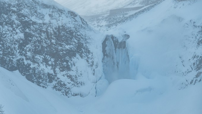 其实,走老半天就是爬上来看这么个被几乎冻住的瀑布而已。