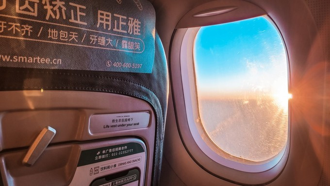 在春秋航空的飞机上,拥抱2022年的第一次日出~