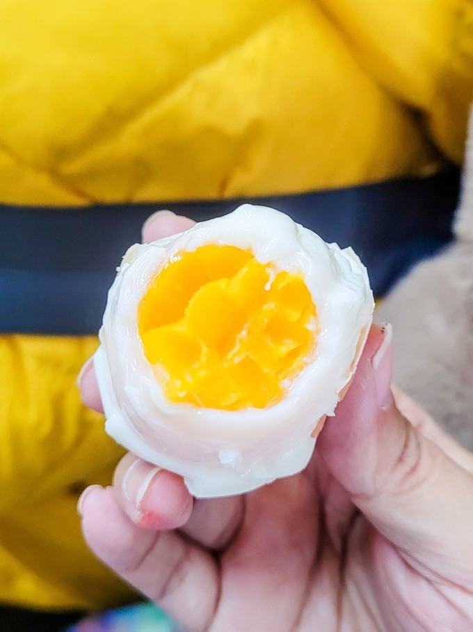 服务站这里看到用山上流下来的温泉水煮的鸡蛋,十块三个